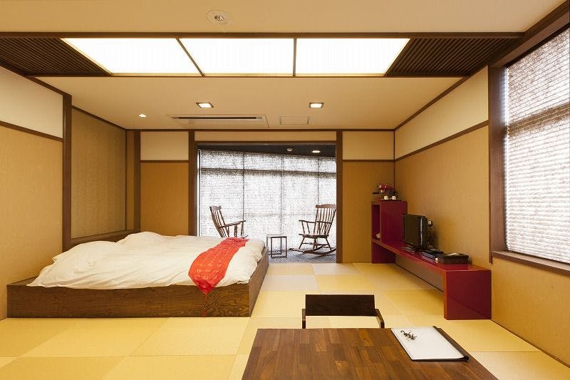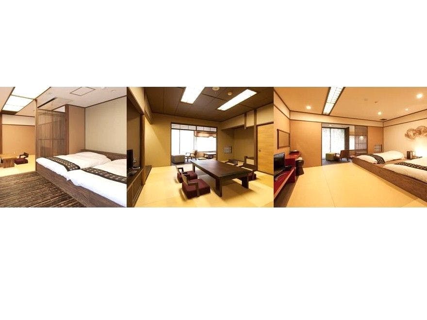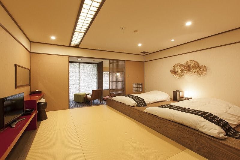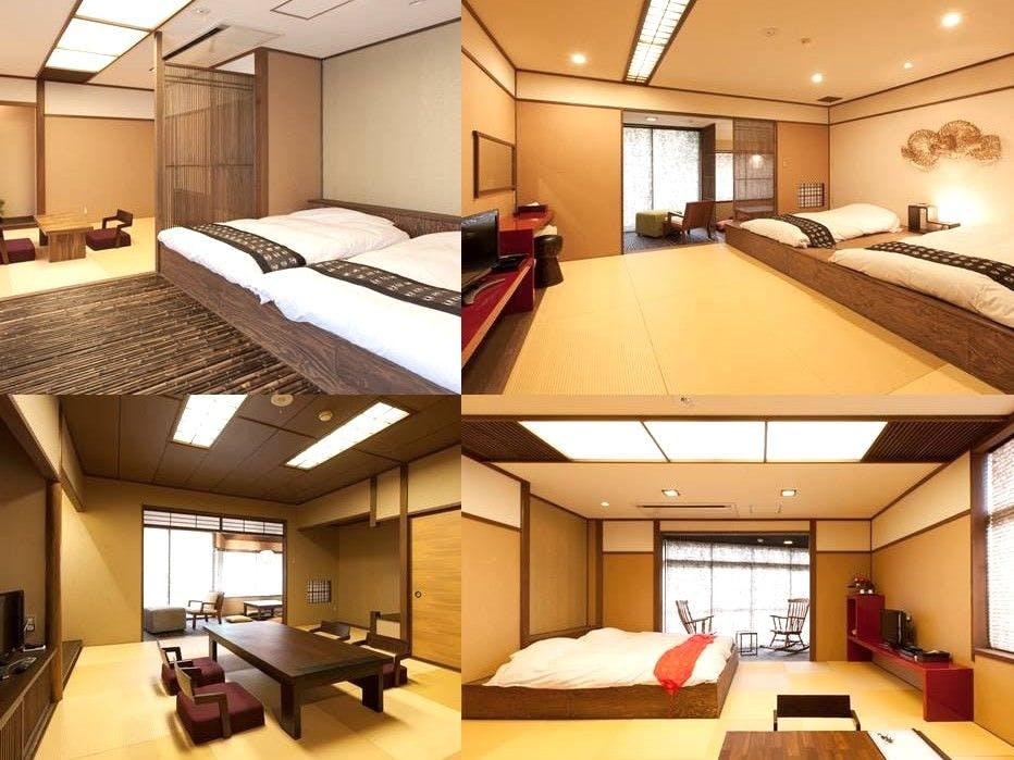 最上階に位置する、山々に囲まれた露天風呂付き客室。正面の山は新緑・紅葉と楽しめます、川治温泉の大自然の中での露天風呂は格別です。天気が良い夜は月や星空の天然プラネタリュウムが鑑賞でき、都会では味わう事のできない最高の贅沢が味わえる客室です。