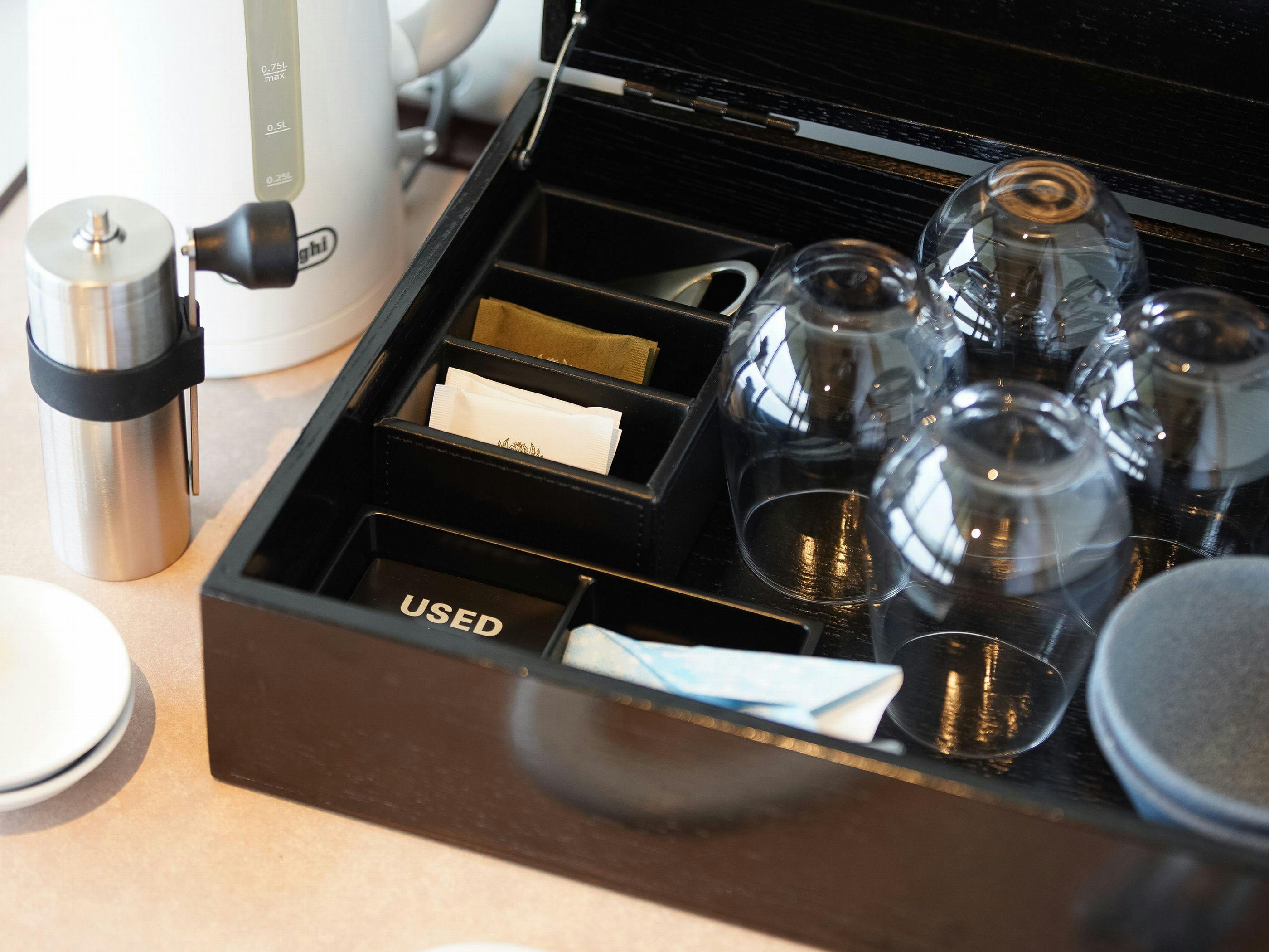 ボディソープ、シャンプー、リンス、石けん、ボディタオル、歯ブラシ、ヘアブラシ、綿棒、ハーブティー