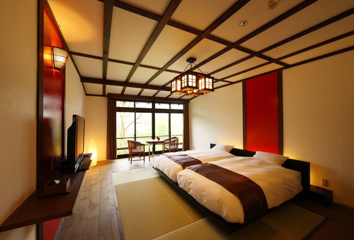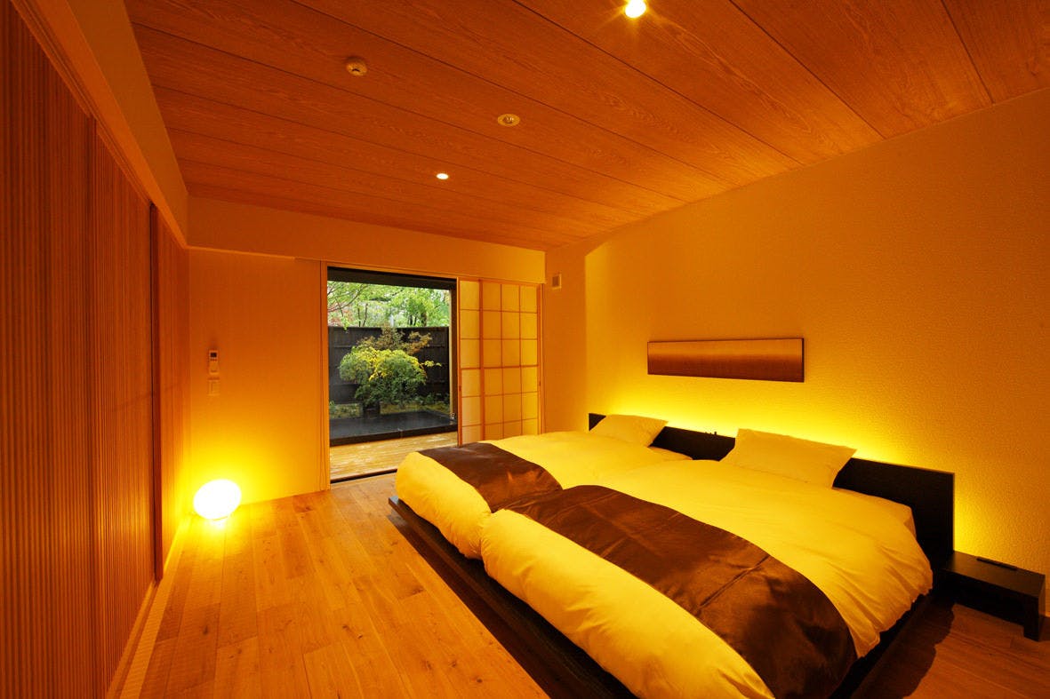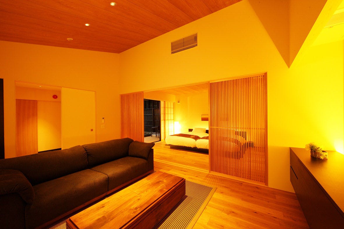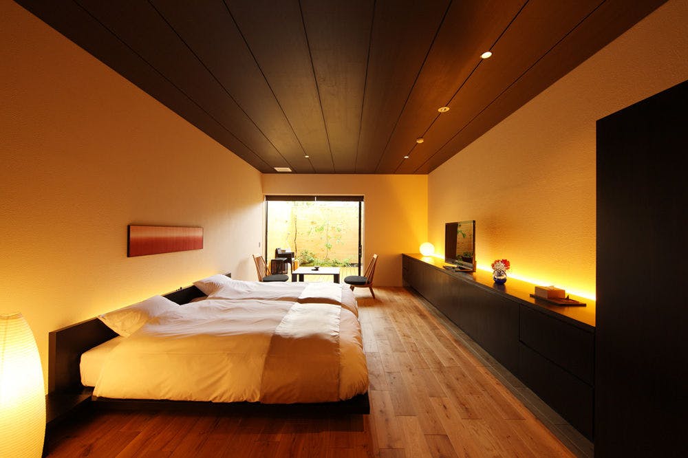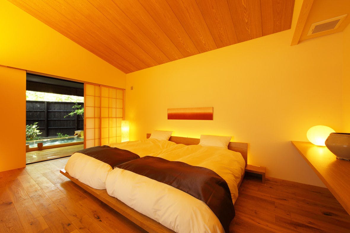 モダンな家具と、落ち着く照明、そして源泉かけ流しの温泉で日頃の疲れを癒してください。