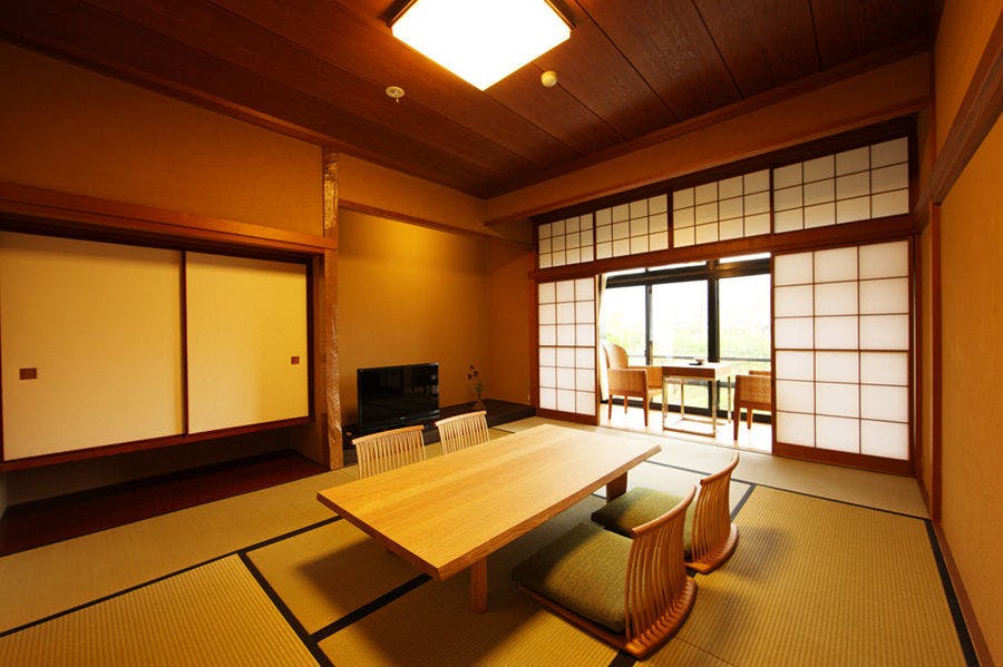 ご家族で…、ご友人と…、旅のひと時をゆっくりとお過ごしください。2階に位置しているので、季節によって表情を変えるお庭を一望することができます。