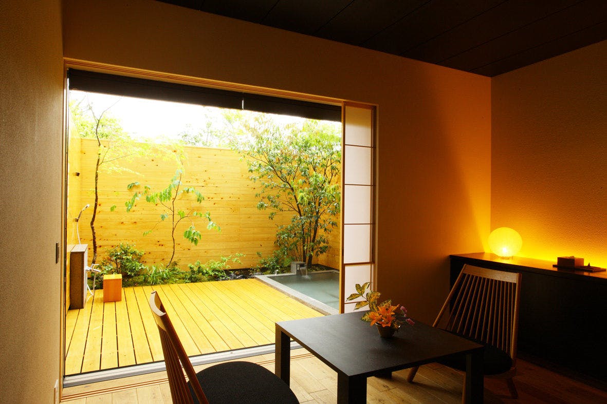 建築界の巨匠、あの内田繁氏がデザインをした広いテラスと露天風呂が付いたお部屋です。