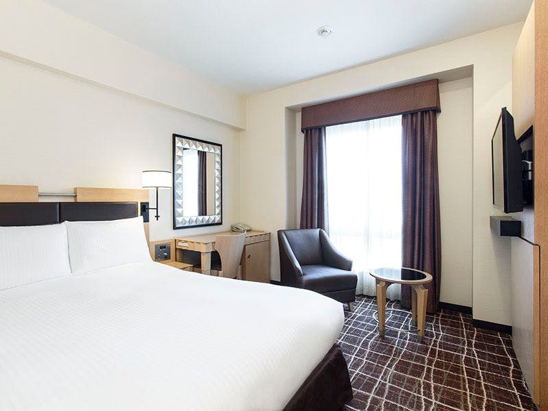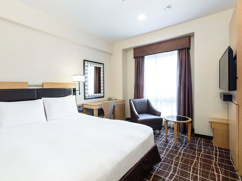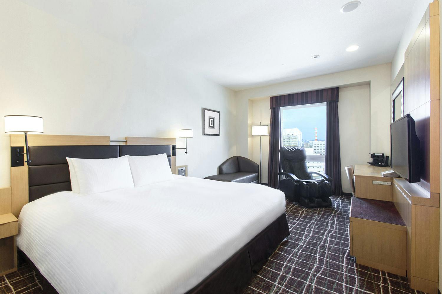コーナーに位置するゆったりとした広さの客室。客室からは市内を走るモノレールがご覧いただけます。