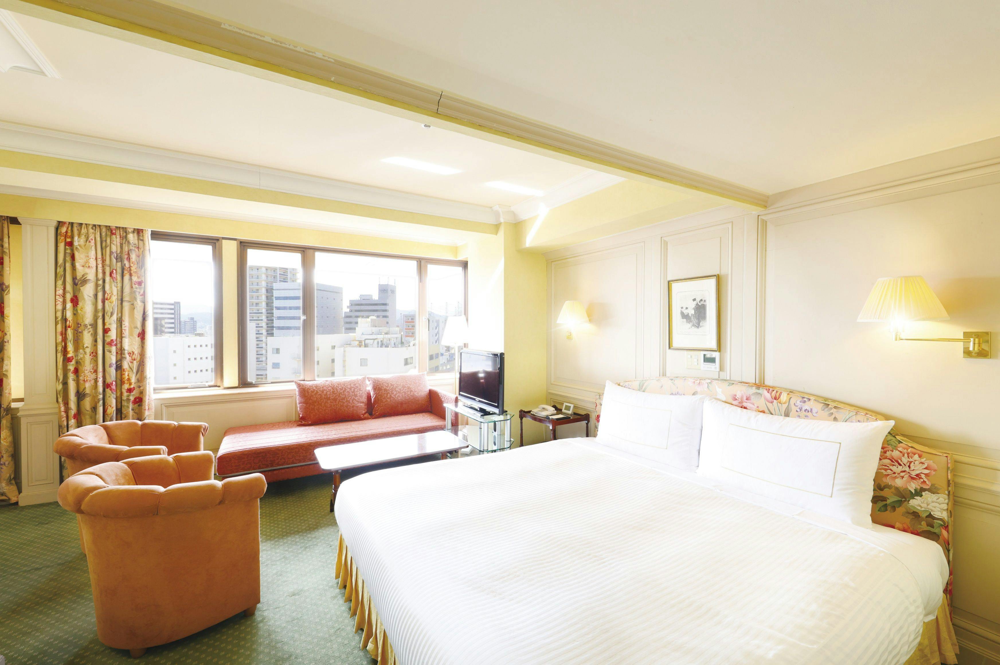 □庭園側のお部屋です□広さ:16平米/ベッド幅:120cm×1台/Wi-Fi完備/JR小倉駅より徒歩8分またはモノレール旦過駅より徒歩2分