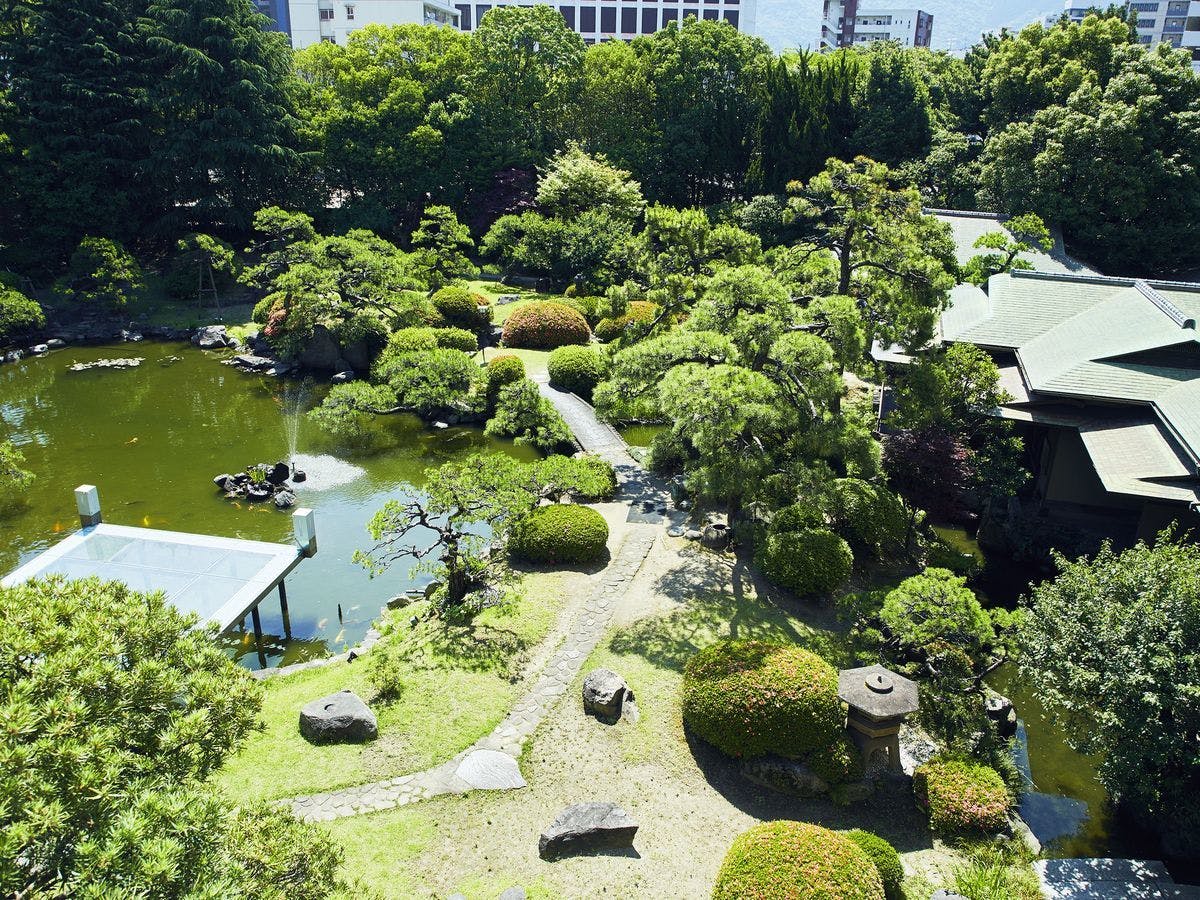 小倉北区の繁華街にありながら、静かな時を刻む「アートホテル小倉 ニュータガワ」。炭鉱王が手がけた日本庭園を持つ迎賓館で、130年前の日本庭園が今も美しく広がっています。