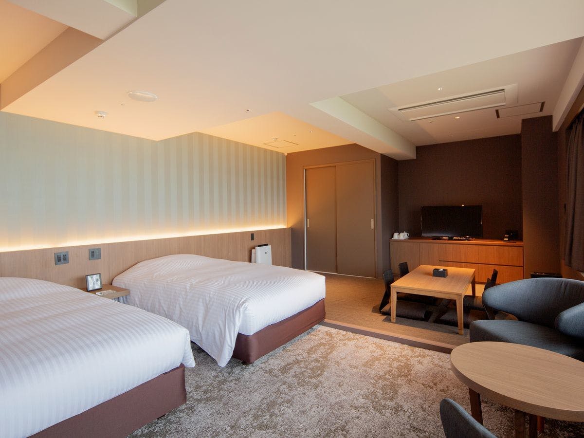 □庭園側のお部屋です□広さ:25平米/ベッド幅:100cm×2台/Wi-Fi完備/JR小倉駅より徒歩8分またはモノレール旦過駅より徒歩2分