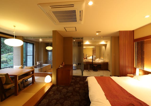 半露天風呂or大窓の檜風呂or御影石風呂の3タイプ