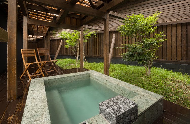 お部屋は、和室2間又は3間と露天風呂となっております。客室露天風呂で誰にも邪魔されない特別な時間をお過ごしいただけます。