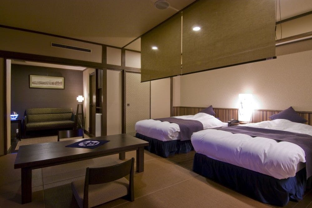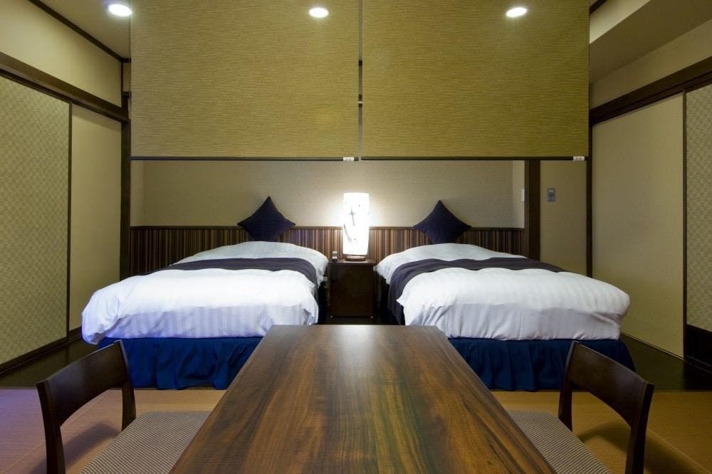 デザインルーム和モダンツインローベッド付DVDプレイヤー、壁掛け液晶TV完備お風呂がついておりませんので、大浴場や貸切風呂をご利用下さい。