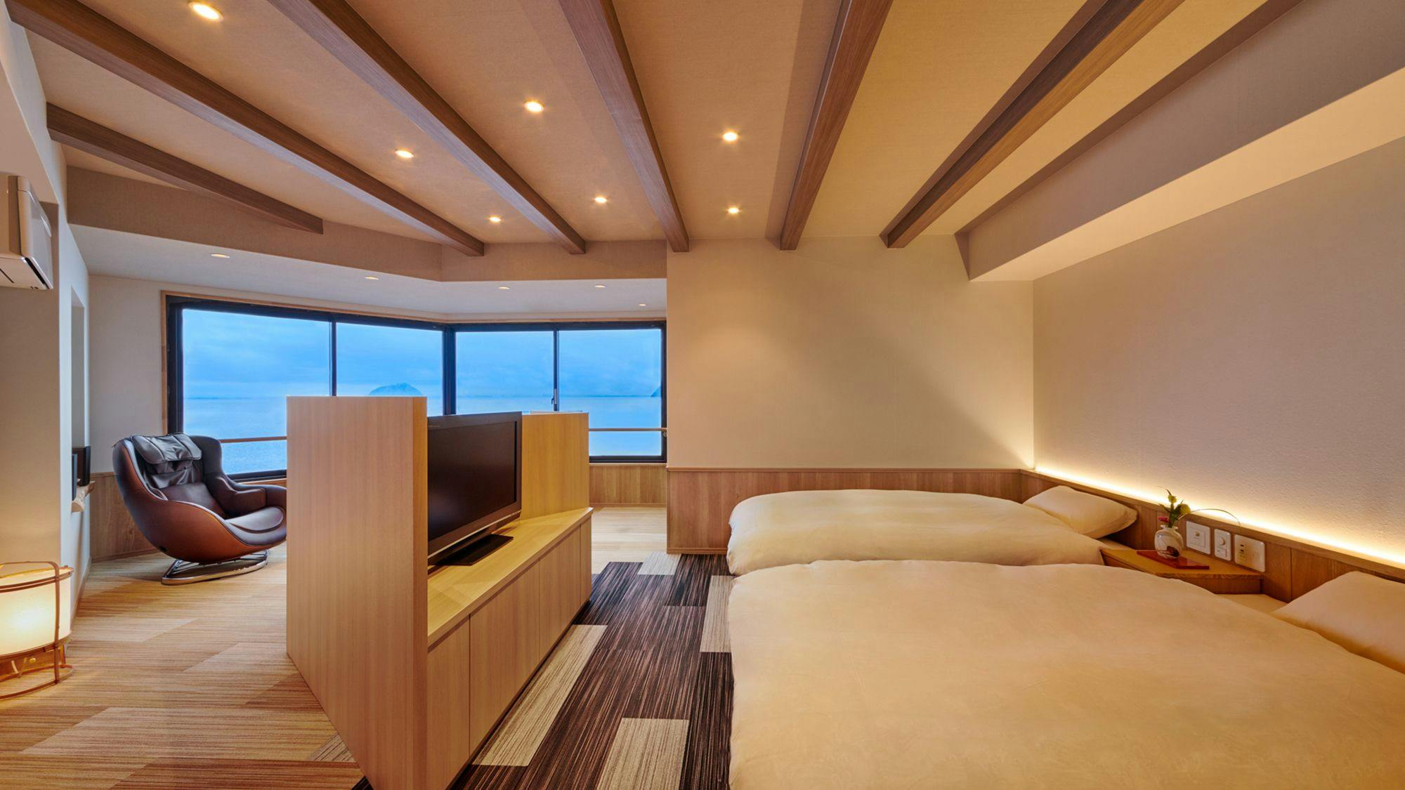 お部屋にはマッサージチェアを完備が完備されております。