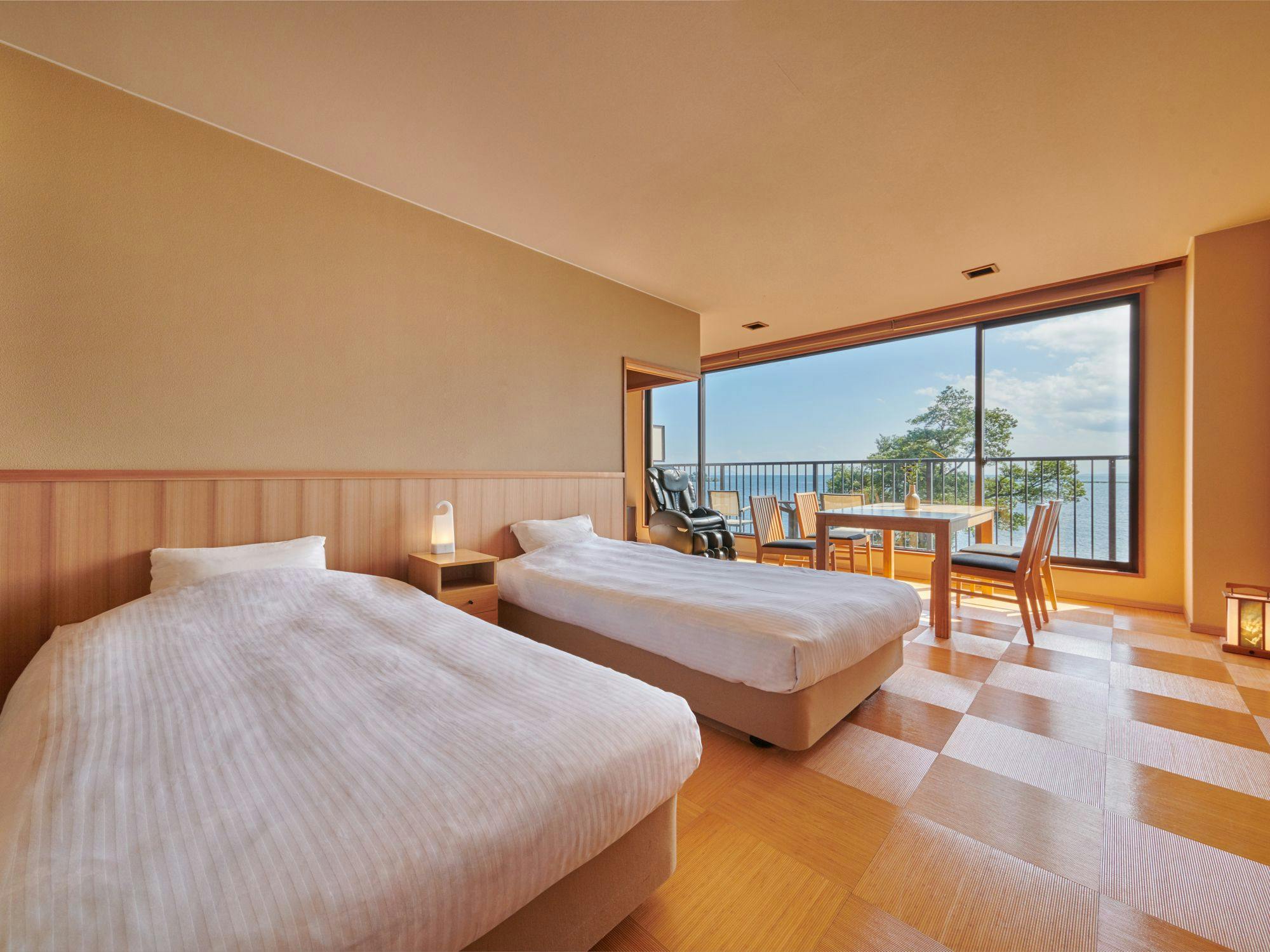 お部屋はびわ湖に面した【温泉半露天風呂付客室】。