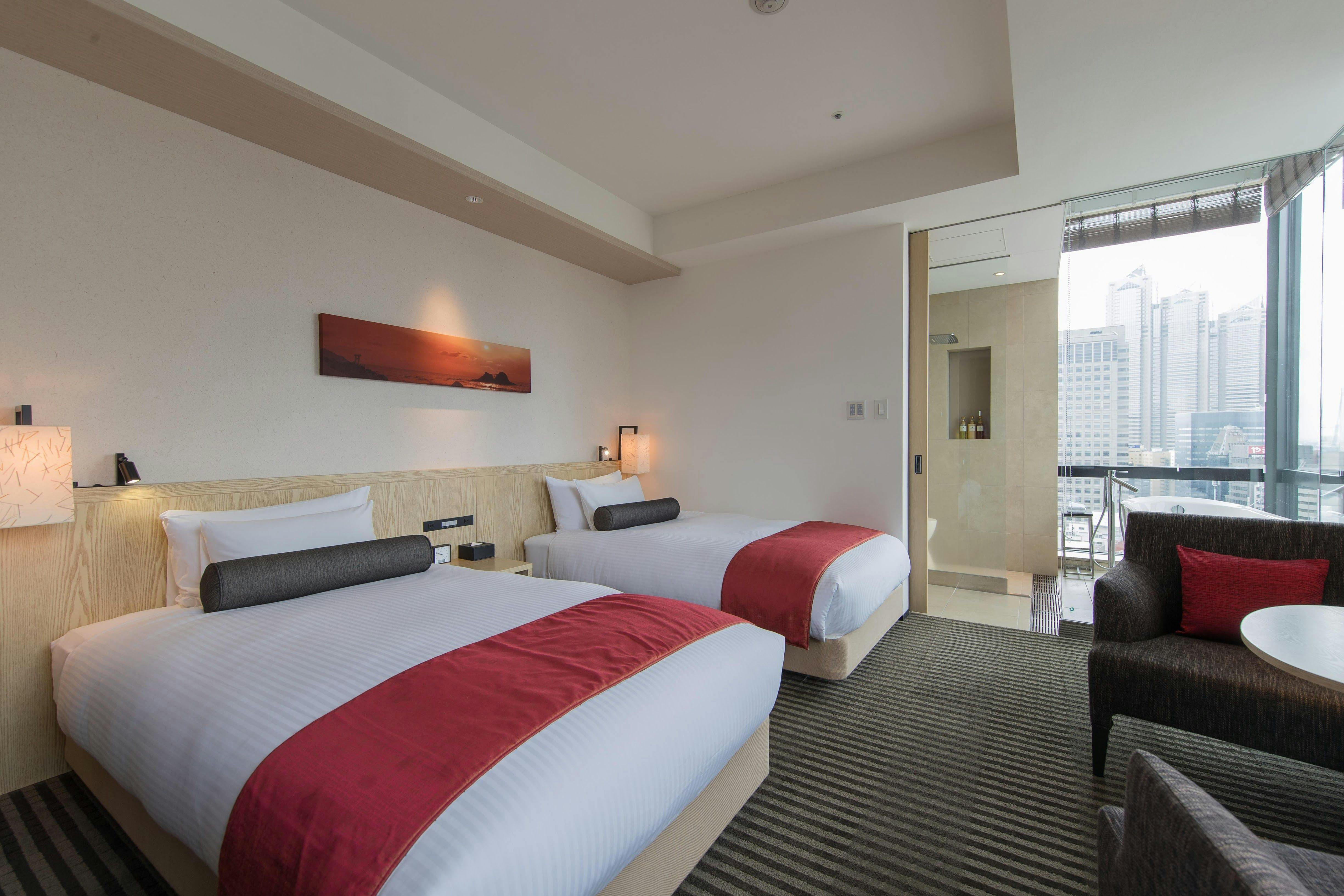 新宿駅南口・バスタ新宿より徒歩3分。ルミネtheよしもと、高島屋も徒歩圏内!ゆとりの14時チェックイン~11時アウト。全室18平以上!眠りのコンシェルジュ、シモンズベッド完備、空気清浄機も完備。