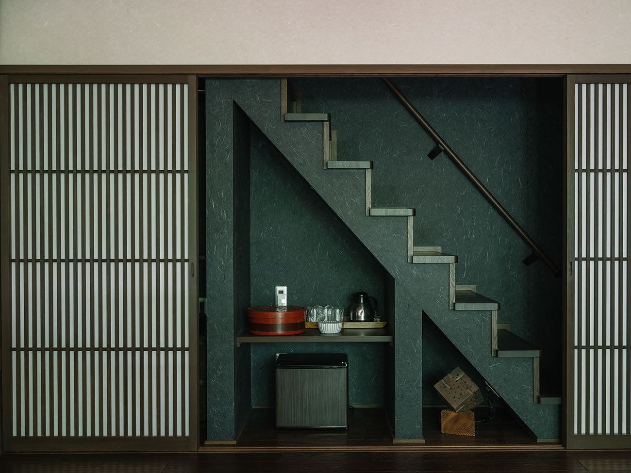 令和3年4月完成。サウナ―の皆様のリクエストが反映されたサウナの本場スウェーデンTYLOHELO製スチームサウナ付客室付きの本館10帖+メゾネット洋室「植治」の【サウナ付客室 夕霧 70平米】でのご宿泊。