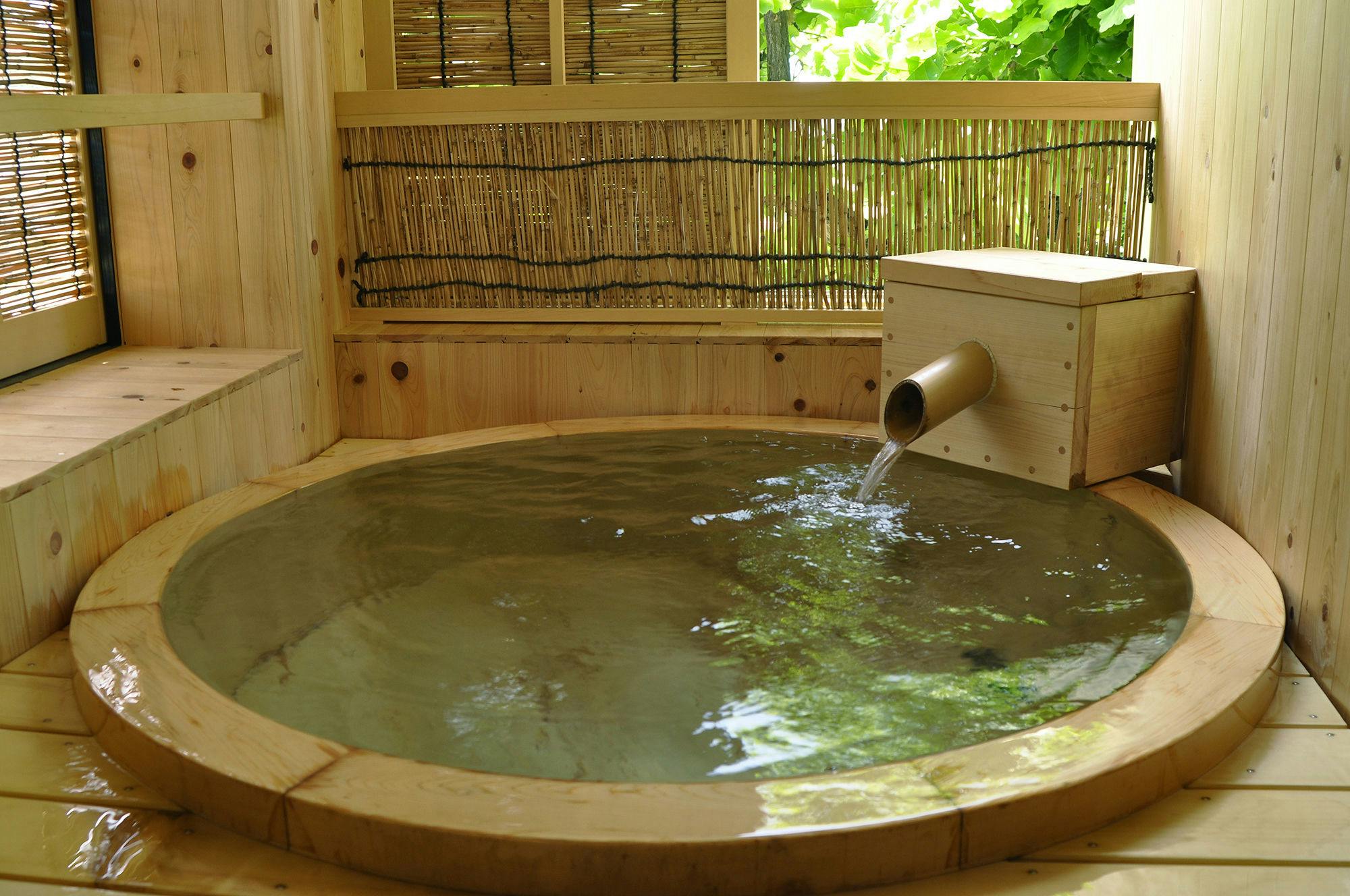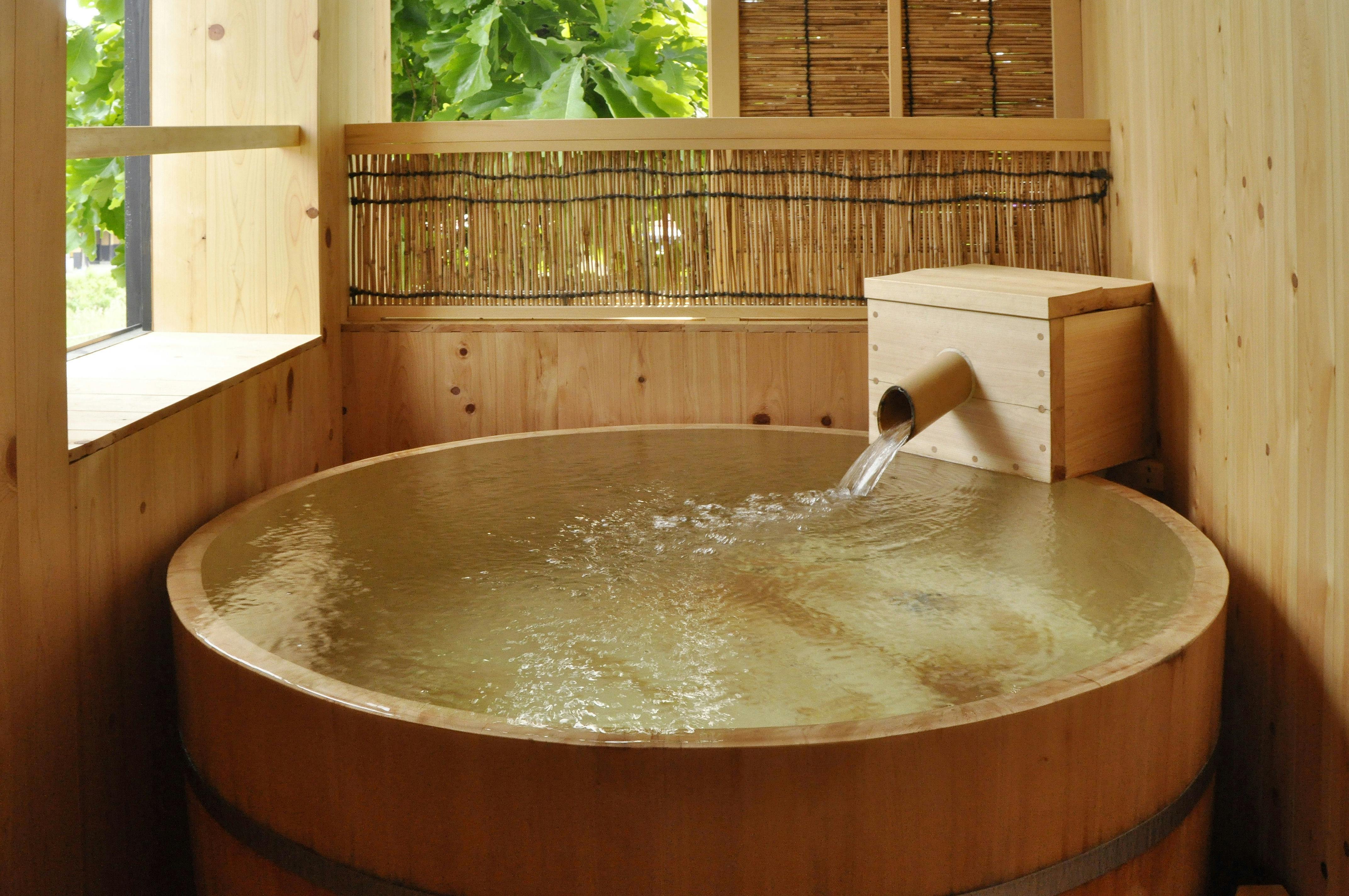 源泉4カ所から溢れるかけ流しの天然温泉と心を込めたおもてなし。露店風呂付き客室【遊心庵】は、全室源泉かけ流しの露天風呂付、2間続きのお部屋。