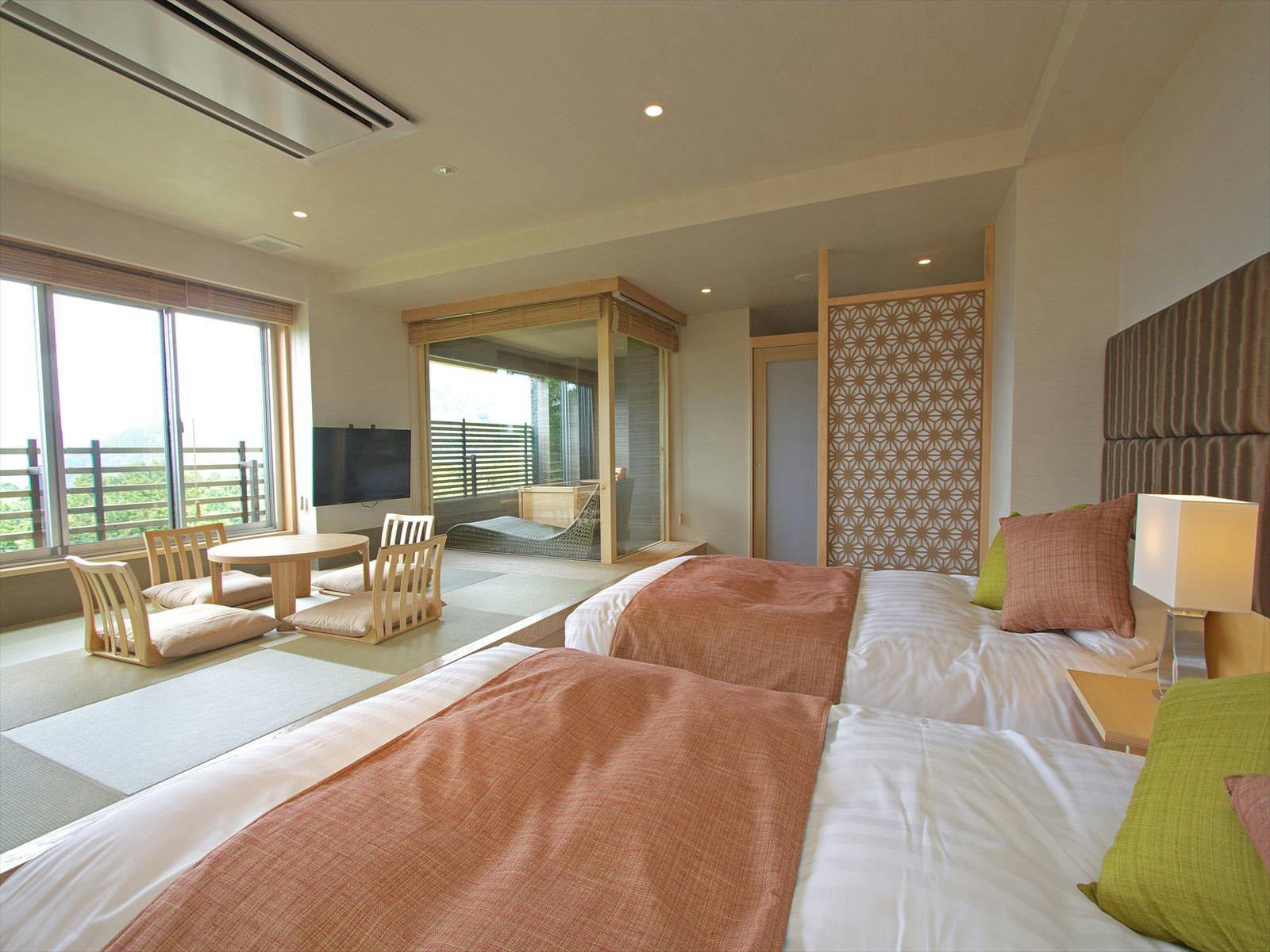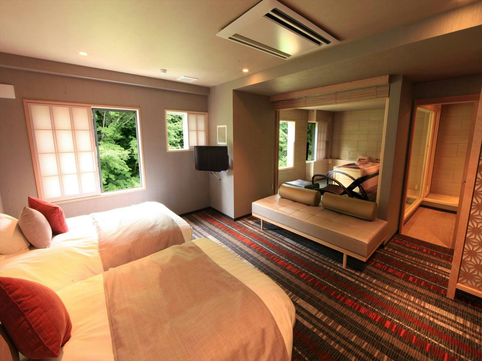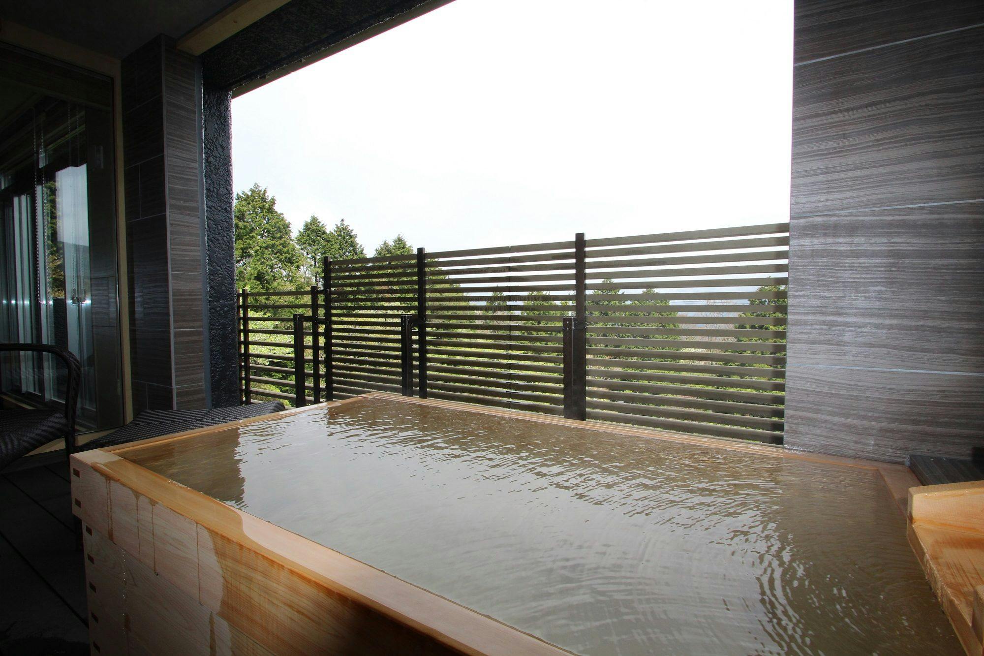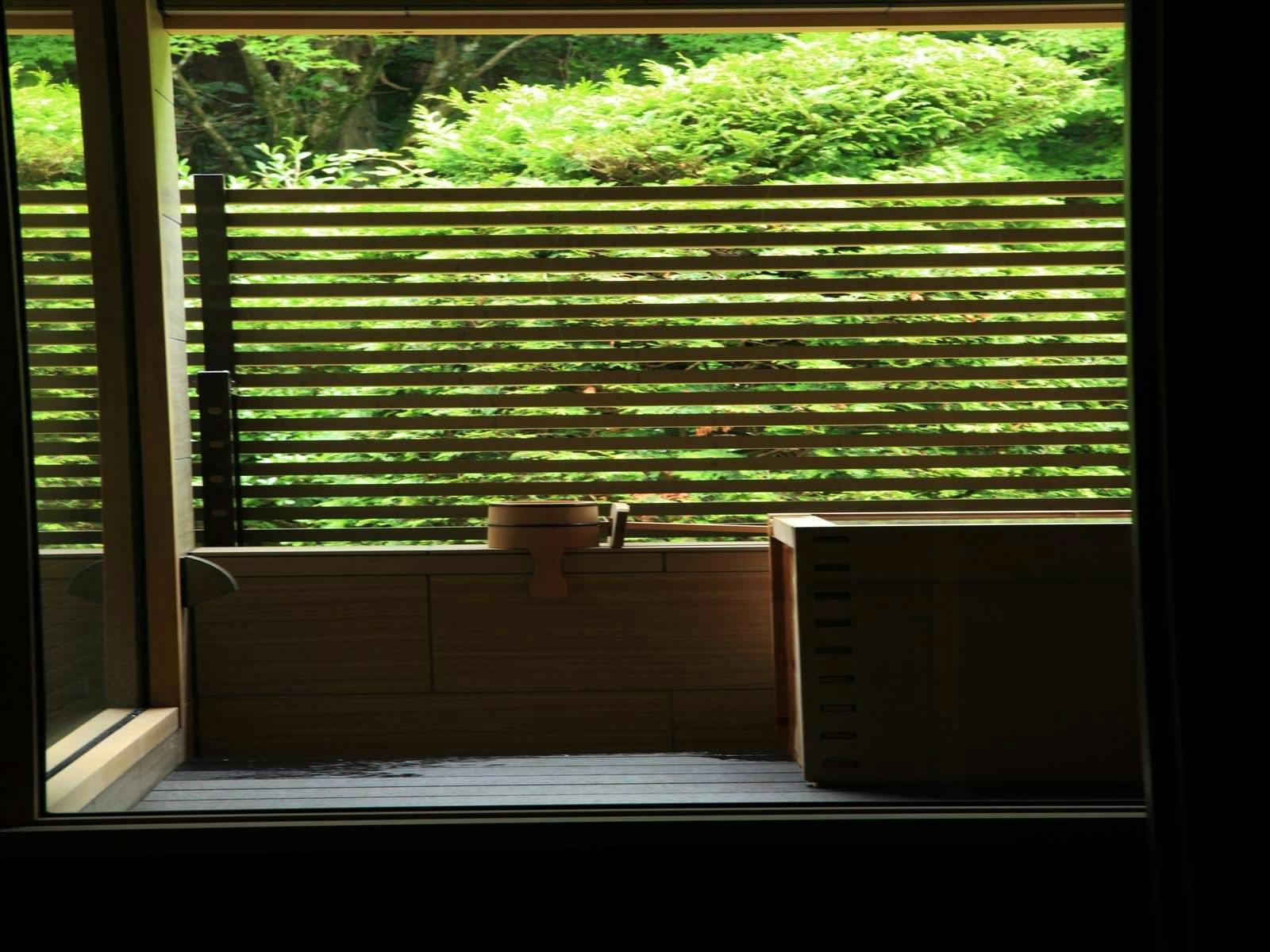 客室は檜の半露天風呂で強羅温泉を掛け流し。お食事は相模湾で獲れた新鮮な魚介や、神奈川のブランド和牛などこだわり食材を使った旬の会席料理を個室ダイニングでごゆっくりとお召し上がり頂けます。