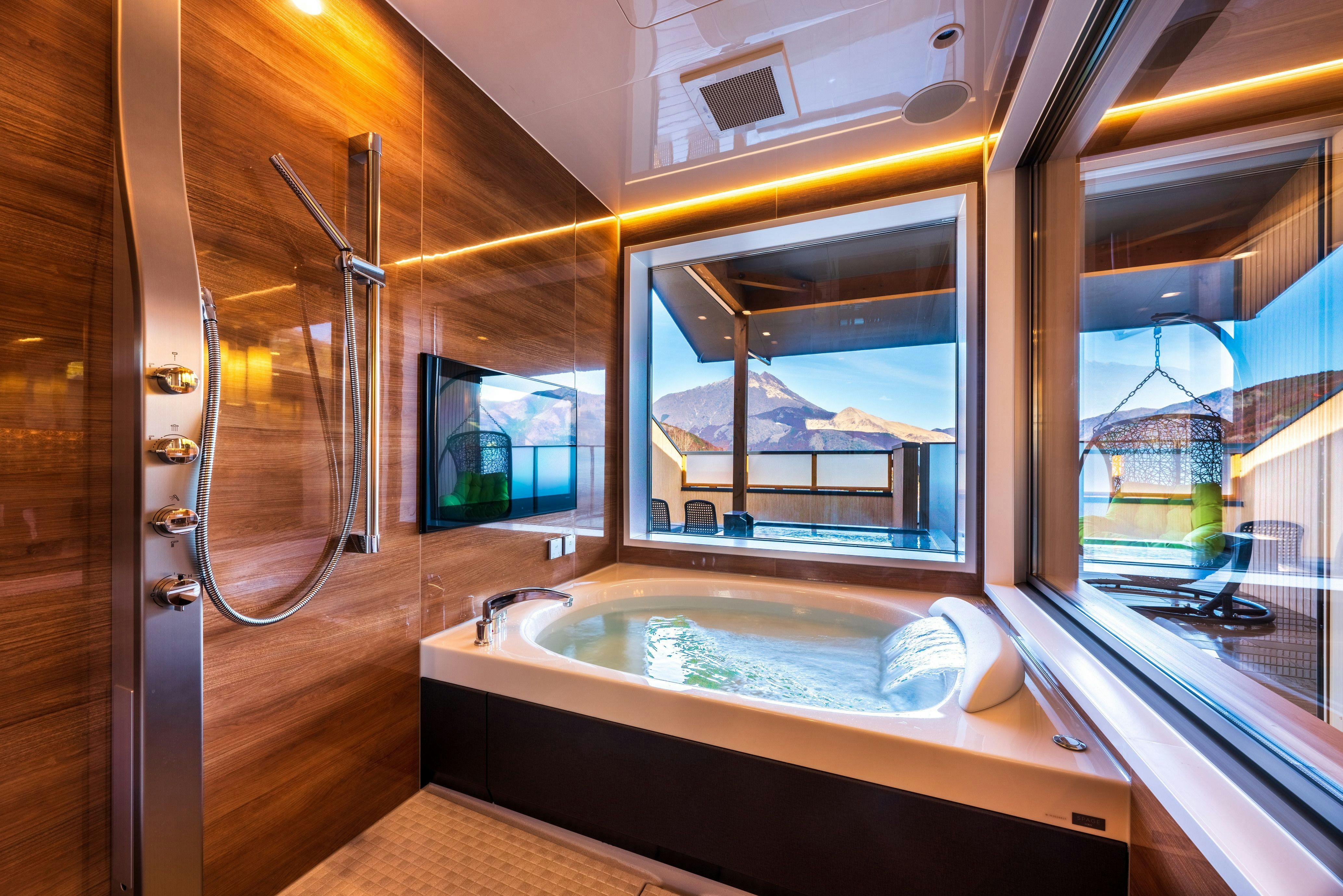 内風呂/露天風呂/テラス(ウッドデッキ)/冷暖房/床暖房/地デジ対応40型液晶TV(SONY)/冷蔵庫/DVDデッキ/LAN/ウォッシュレット/電話/金庫