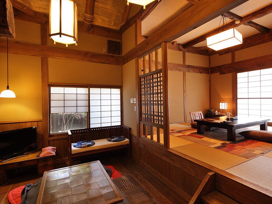 【しおん】離れ 内湯&足湯付和室(囲炉裏付)囲炉裏と内風呂・足湯が付いた離れのお部屋。プライベート感たっぷりの空間です。※お子様のご予約は不可