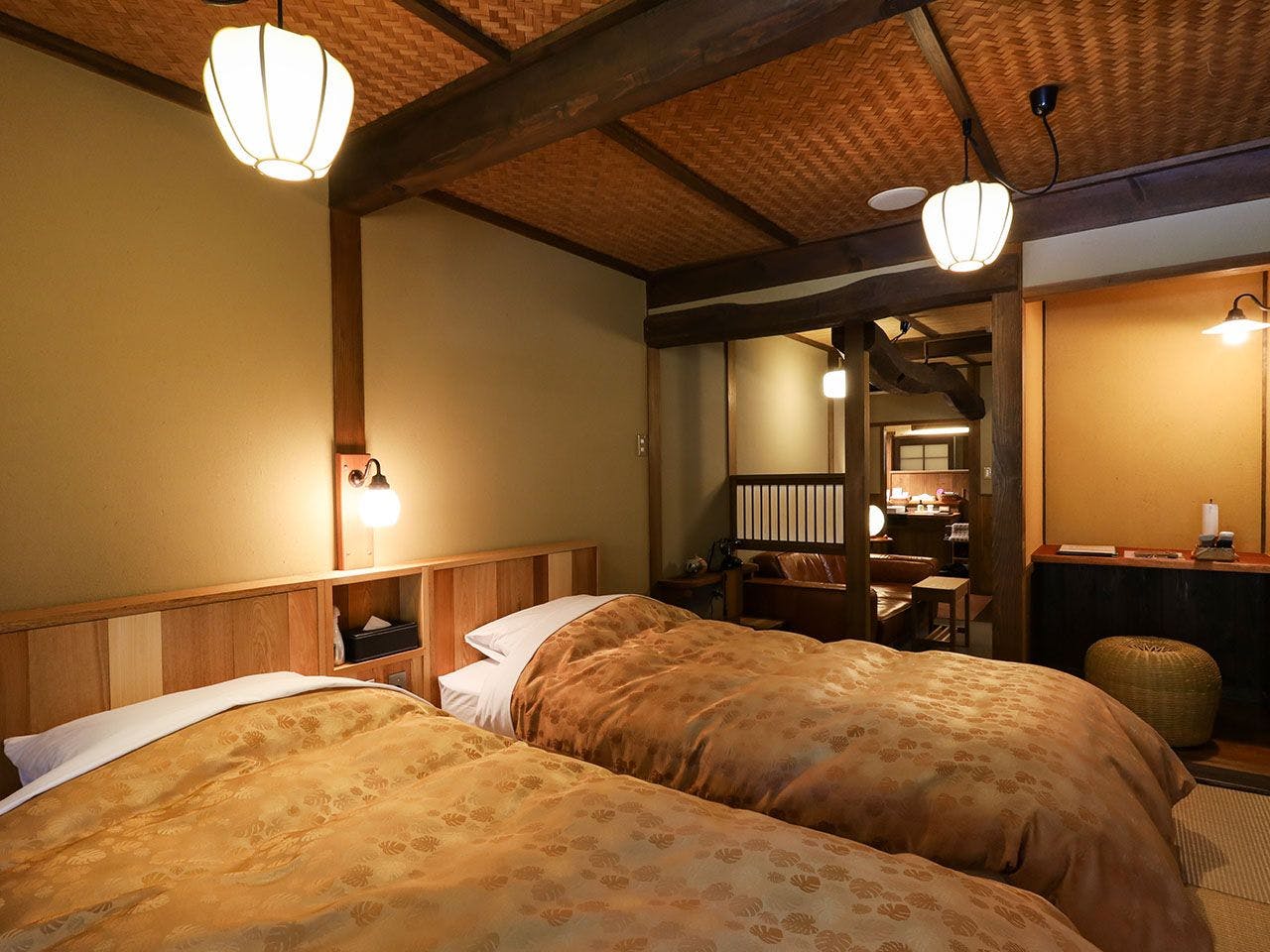 和室(ツインベッド付き)広々とした板の間にツインベッドが付いたスタンダードタイプのお部屋。※このタイプのお部屋にはお風呂・シャワーがございません。※お部屋はご選択いただけません。※お子様のご予約は不可