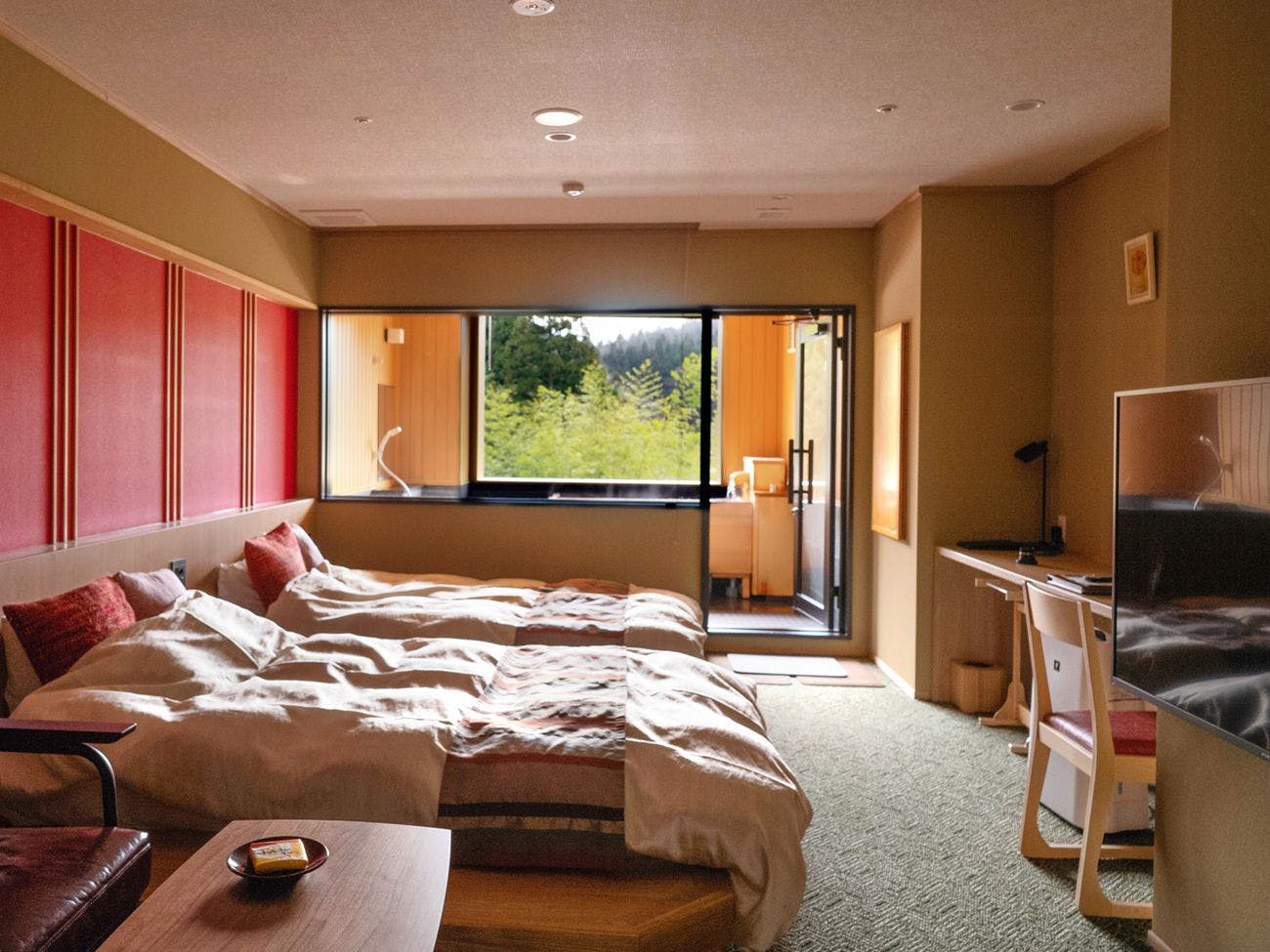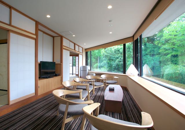 宿一番のビューポイントを望むリビング、和室、洋室に加え、