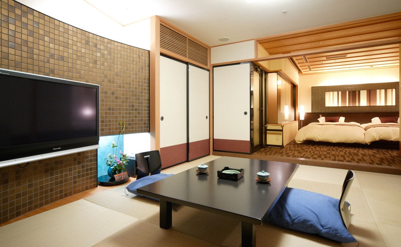 和室12.5畳+10畳+ツインベッド+サロン付。