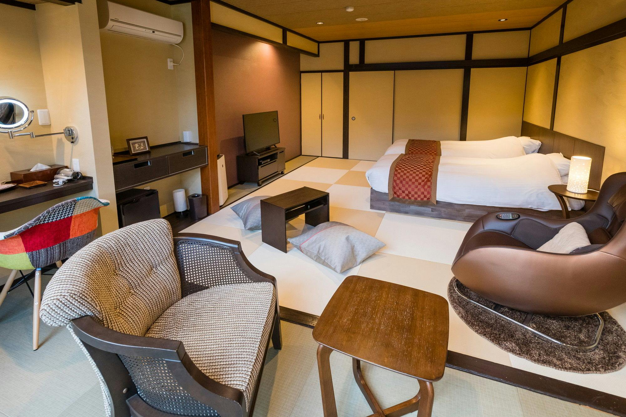 2019年リニューアル致しました、和洋室になります。当館で一番グレードの高いお部屋です。角部屋でお部屋には無料のマッサージチェアも付いております。ごゆっくりとお寛ぎ下さい。※無線LANがご利用になれます。