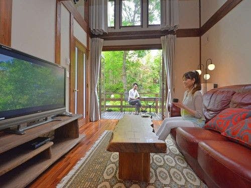 1階居間40平米+2階寝室30平米+庭園付檜露天風呂+専用テラス付。