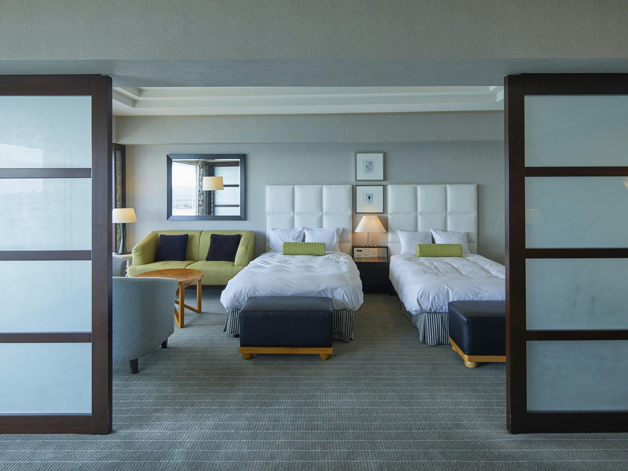 4名様まで宿泊可<最上階18階>※3名様以上の場合はソファベッドをご用意。バス・トイレ・ベッド幅:120cm×2台。広さ:118平米・無線LAN完備