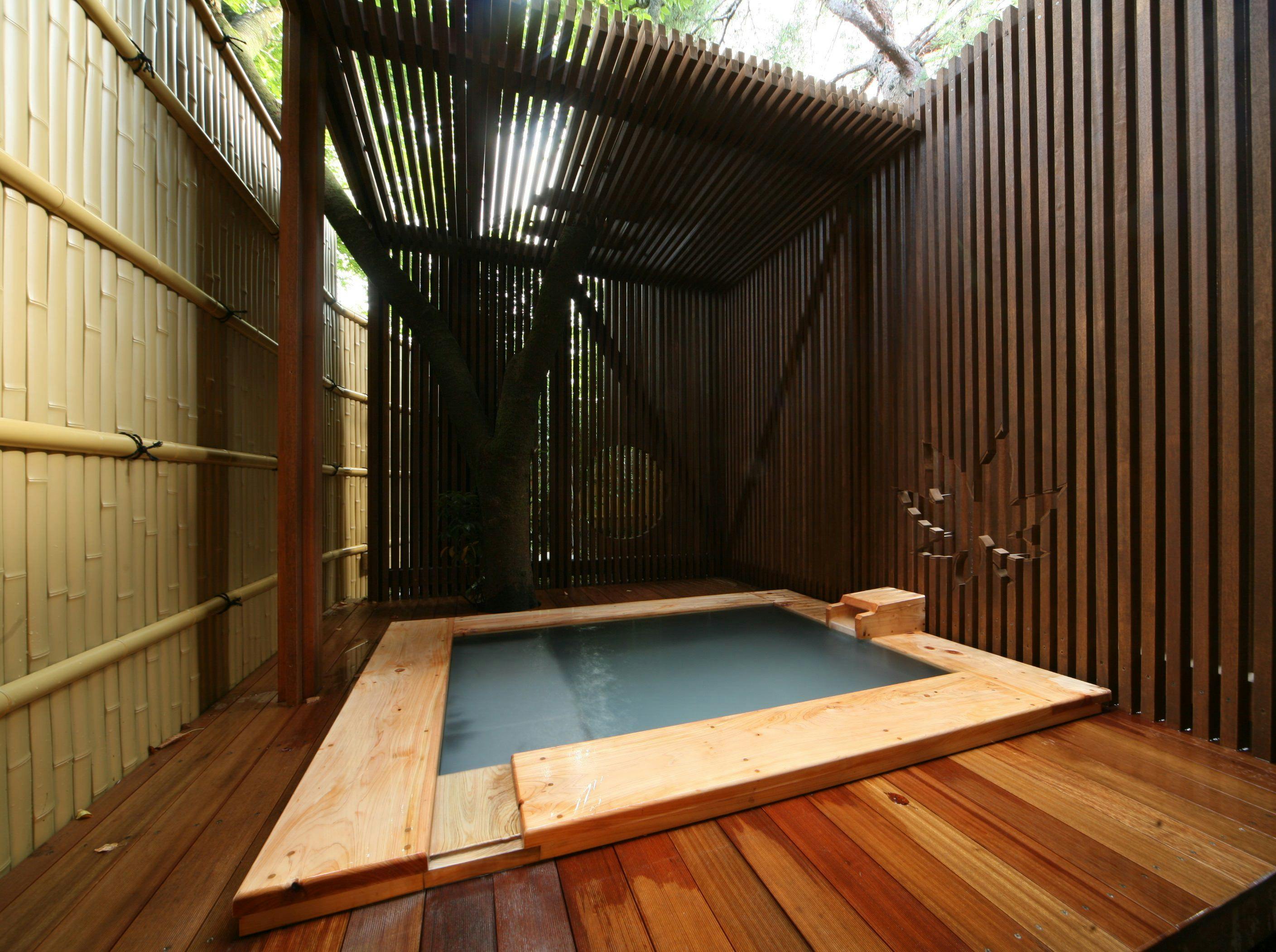 竹に囲まれ、竹でしつらえられた、”竹の湯”。風情溢れるしつらえには職人の技が込められています。