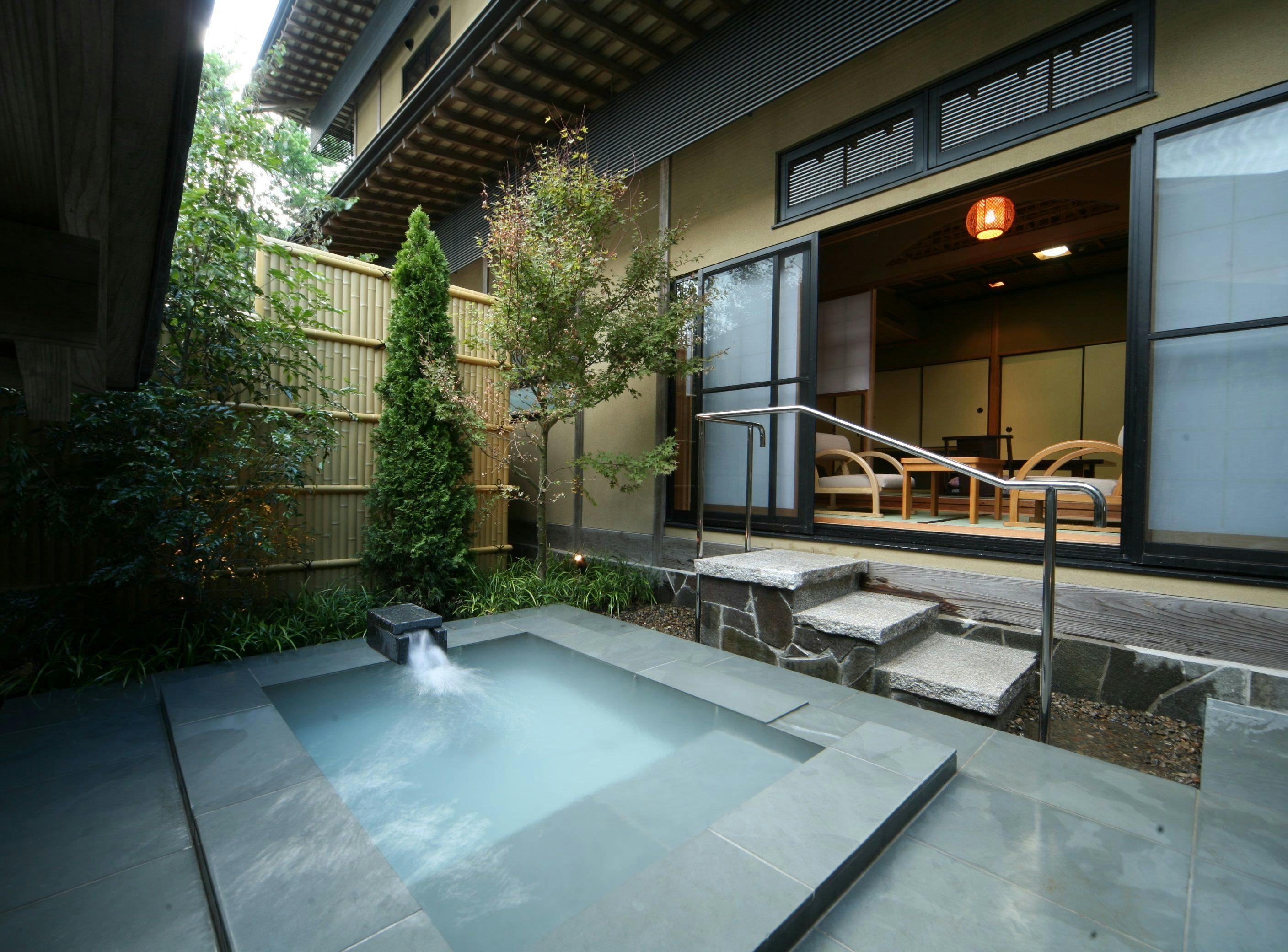 格子に囲まれた露天風呂から仰ぐ空はまた別格です。落ち着いた空間で思索に耽け、心ゆくまで神の湯と霧島を味わいつくす贅を感じます。