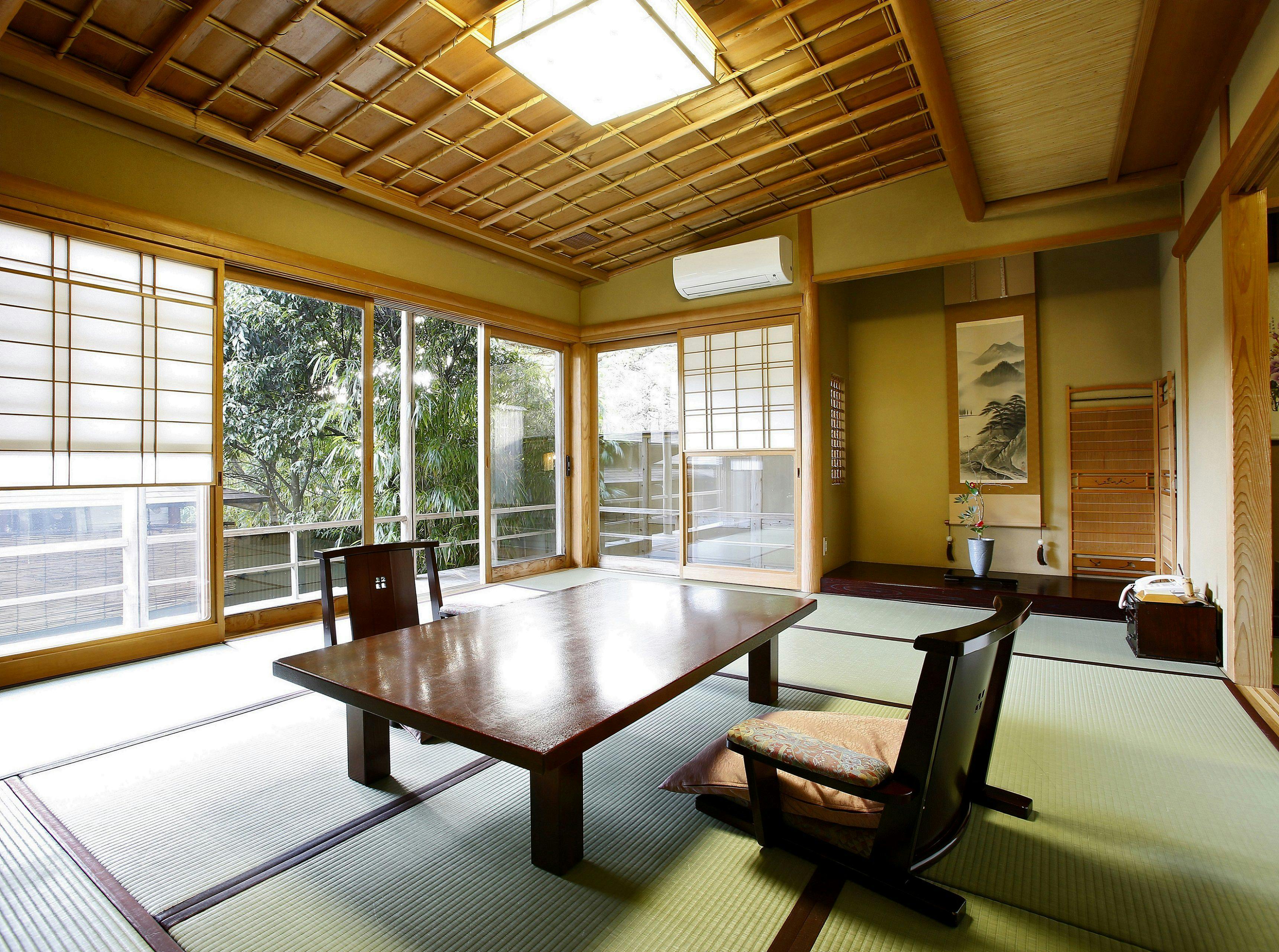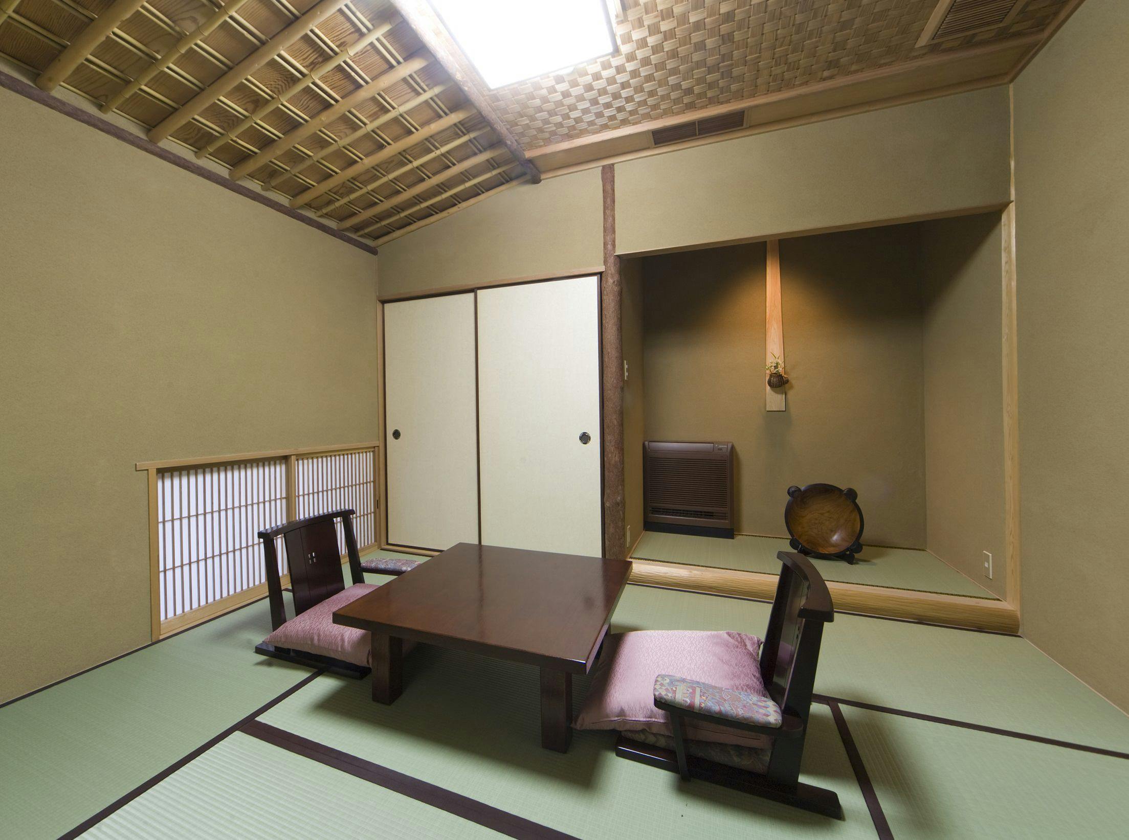 次の間を備えるゆとりある広さのお部屋には、自然の香りに染まった優しい風が満ちています。2階客室は階段でのアプローチになります。ご移動の際はお足もとにご注意下さいませ。