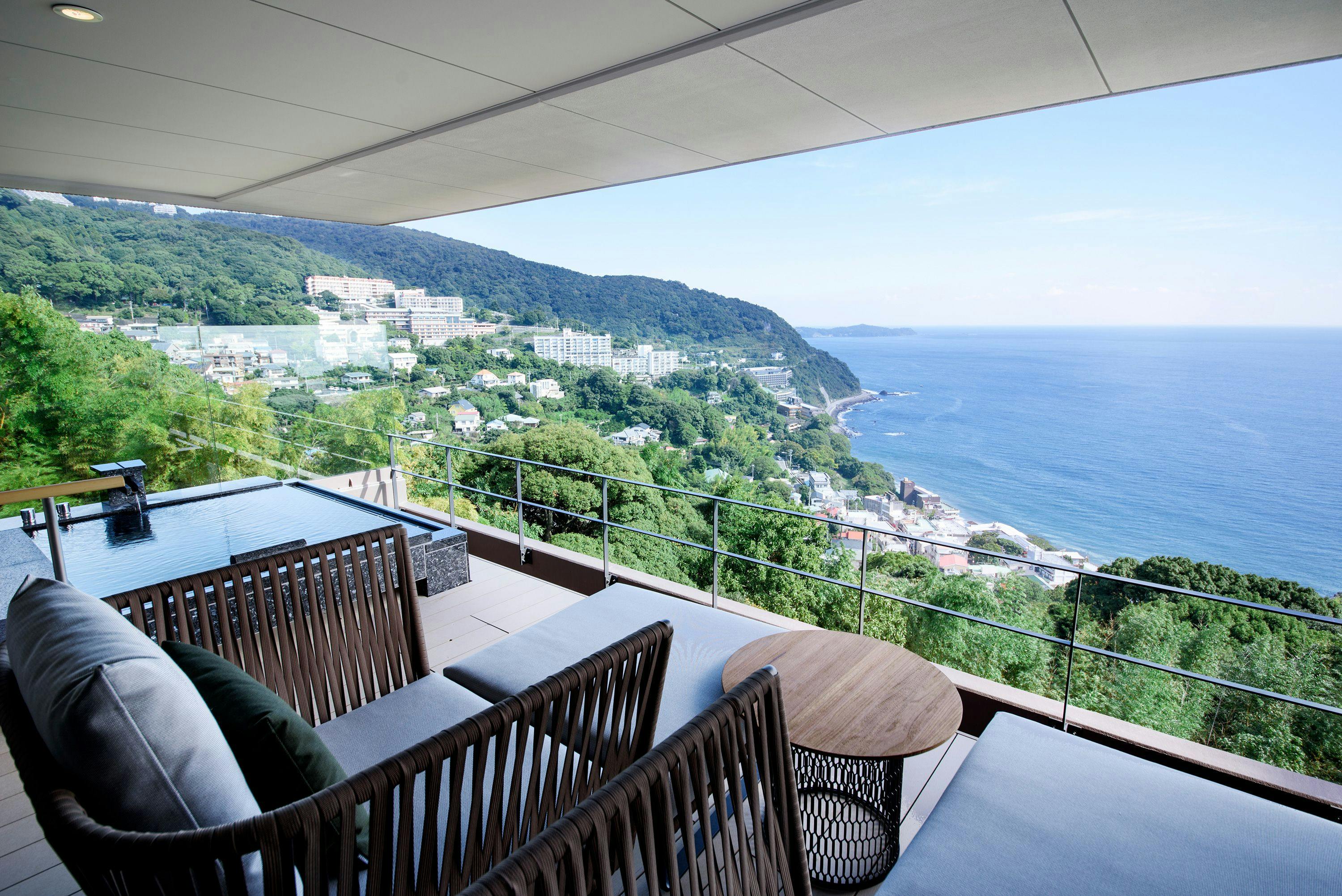 相模湾を望む、熱海伊豆山温泉の丘全室源泉かけ流し客室露天風呂山と海に抱かれ四季折々の時を愉しむ至福の日本料理とともに特別なひと時に出会えるそれが「ATAMI せかいえ」