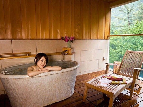 杉立山と石手川を望む渓谷側の特別客室には、奥道後温泉を引き湯したかけ流しの露天風呂が設備されています。静かなプライベート空間にて、滞在中いつでもお好きな時にご入浴いただけます。■1階渓谷側の特別客室【客室設備】・露天風呂(陶器風呂)・液晶テレビ・冷蔵庫(空)・金庫・ウォシュレット付トイレ・マッサージチェア・色浴衣