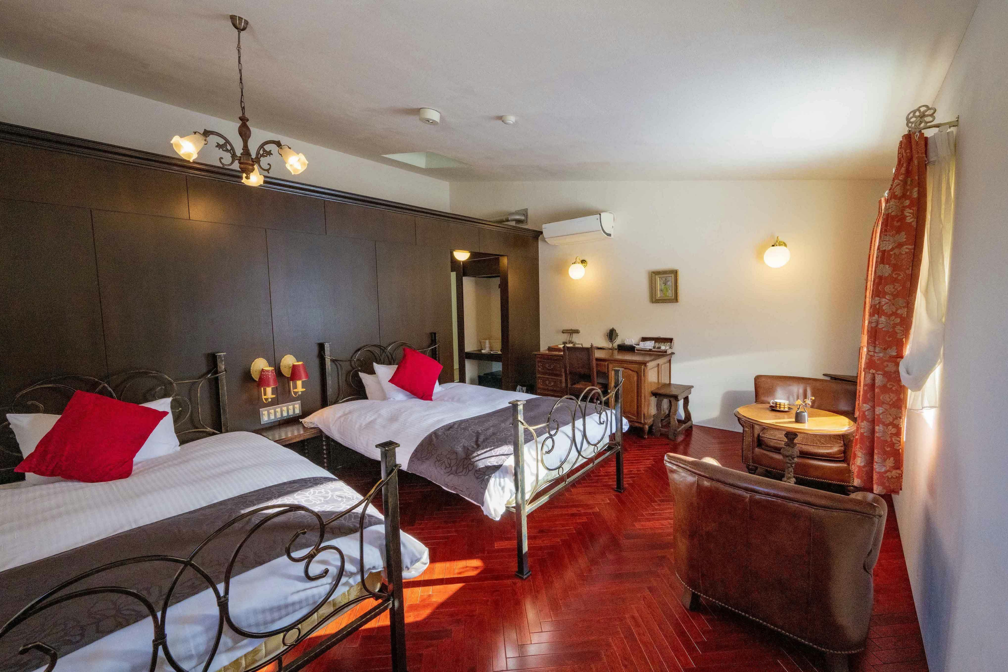 当部屋は階段で最上階までご移動頂く必要があります為、足のご不自由な方、お年を召した方などがいらっしゃる場合は、Chic(ツインルーム)をお薦め致します。