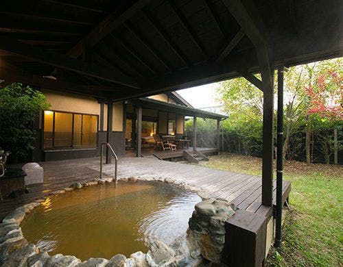 12000坪の広大な敷地と天然温泉の露天風呂付和洋室の離れが自慢のスウィートルームです。客室内に自然豊かなテラスがあり、存分に寛いで頂ける空間をご提供致します。