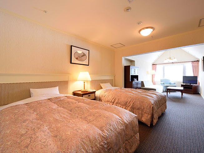 落ち着きある雰囲気でくつろいでいただく事を最優先に考えた広めのツインルームです。3名様までのグループ旅行、女子会にも最適なお部屋です。