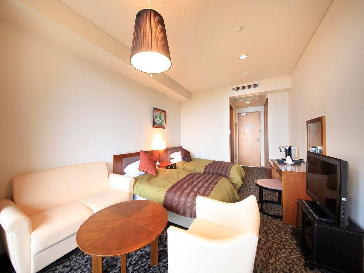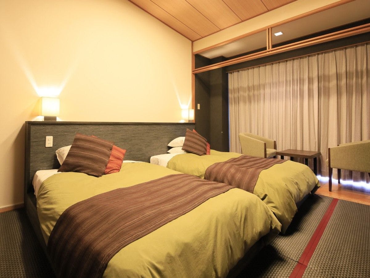 セミダブルサイズ(120×195cm)のベッドを2台設置した和洋室タイプのお部屋です。