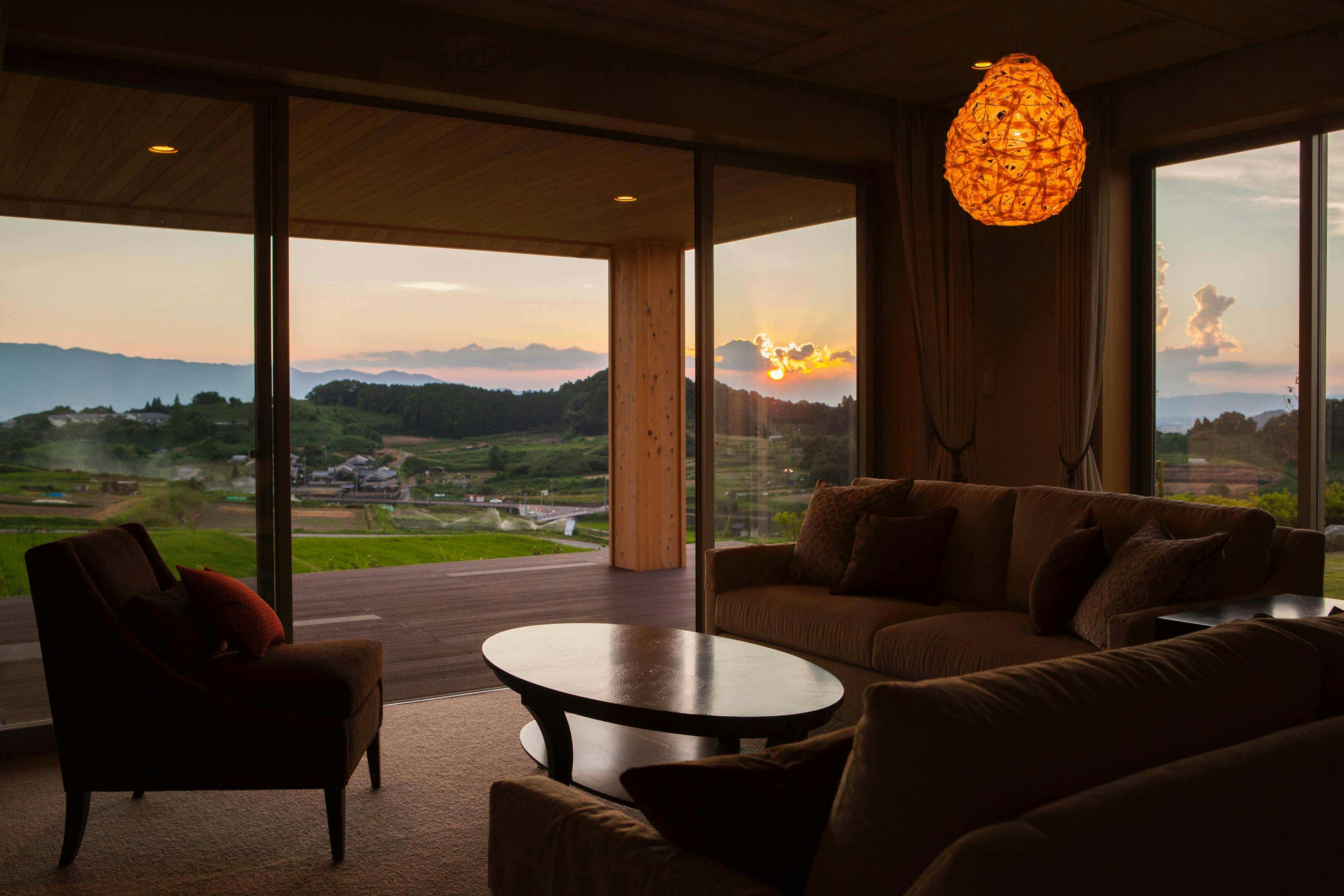 リビングルームとベッドルームに分かれ、ゆったりとしたスペースが魅力のエグゼクティブスイート。インテリアは、日本三大美林の一つである吉野杉を一面に敷いた天井に吉野檜の灯りを吊るすなど、木の素材感を生かした上質でシンプルなデザインに仕上げています。奈良のエッセンスを感じる、木の香りと温もりに包まれた空間でゆっくりとお寛ぎください。