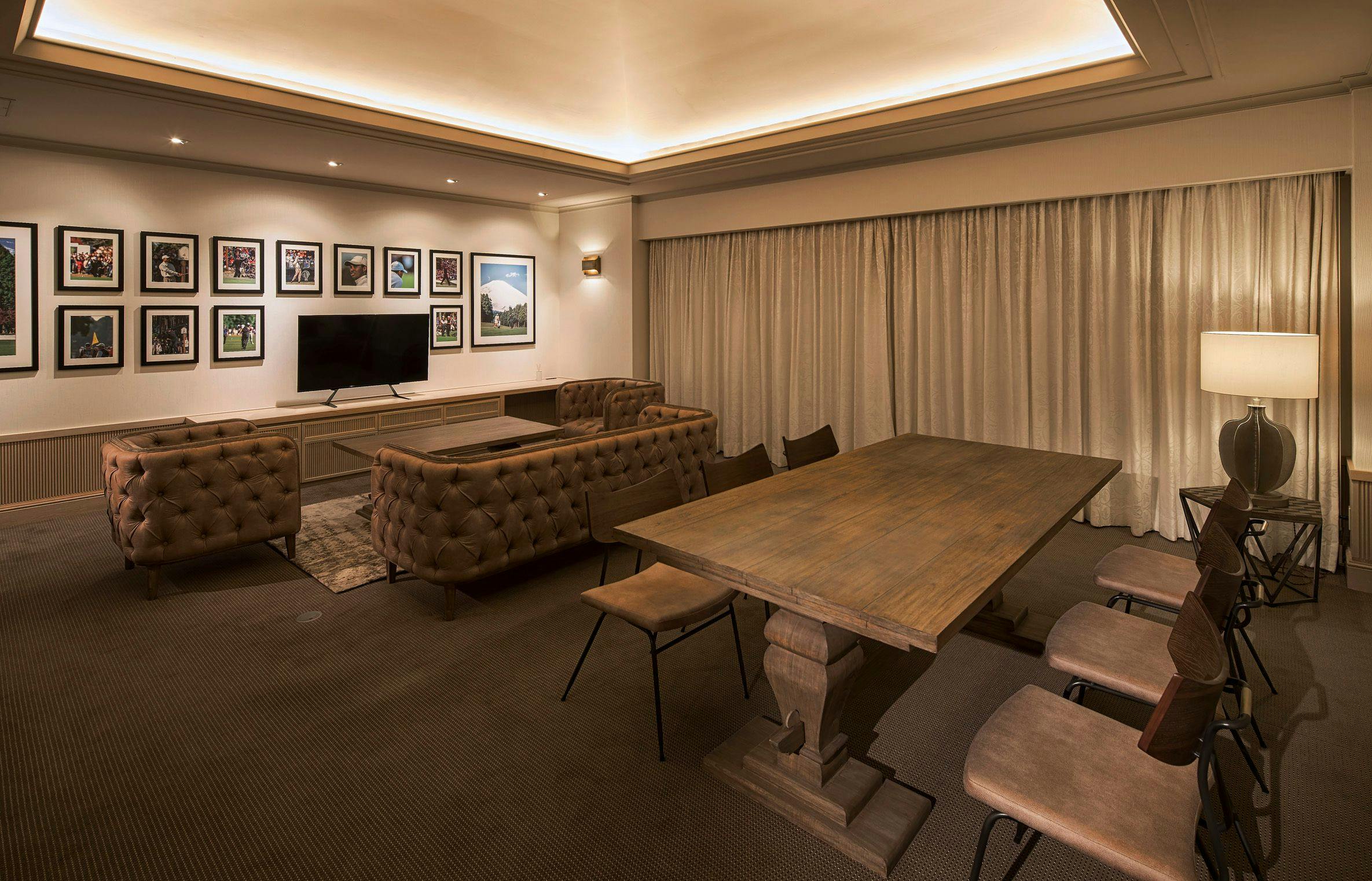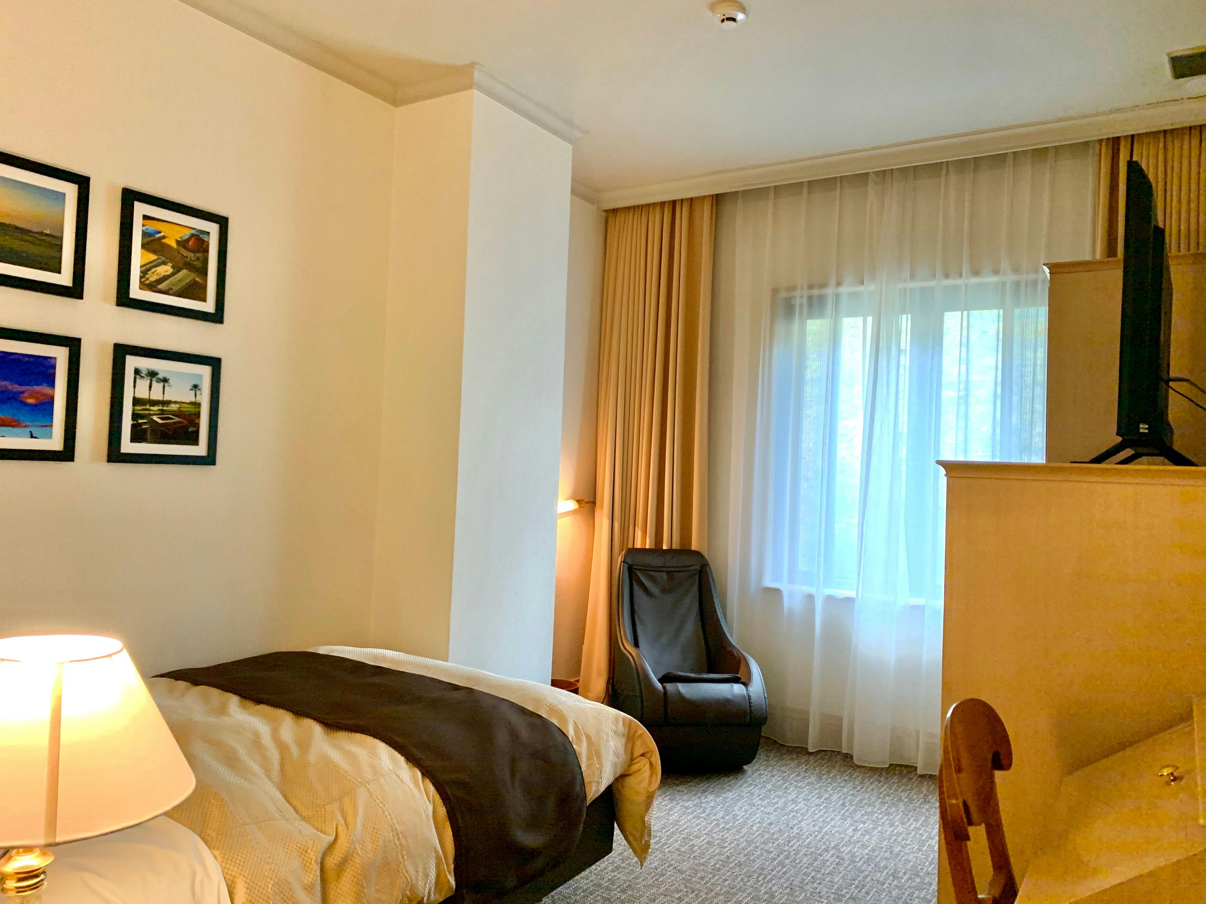 世界のトップゴルファーの皆様も宿泊され絶賛いただきました客室でございます。広い客室にゆったりとした落ち着きのあるリビングルームとベッドルームを用意いたしております。シモンズ製ベッドを使用しております。