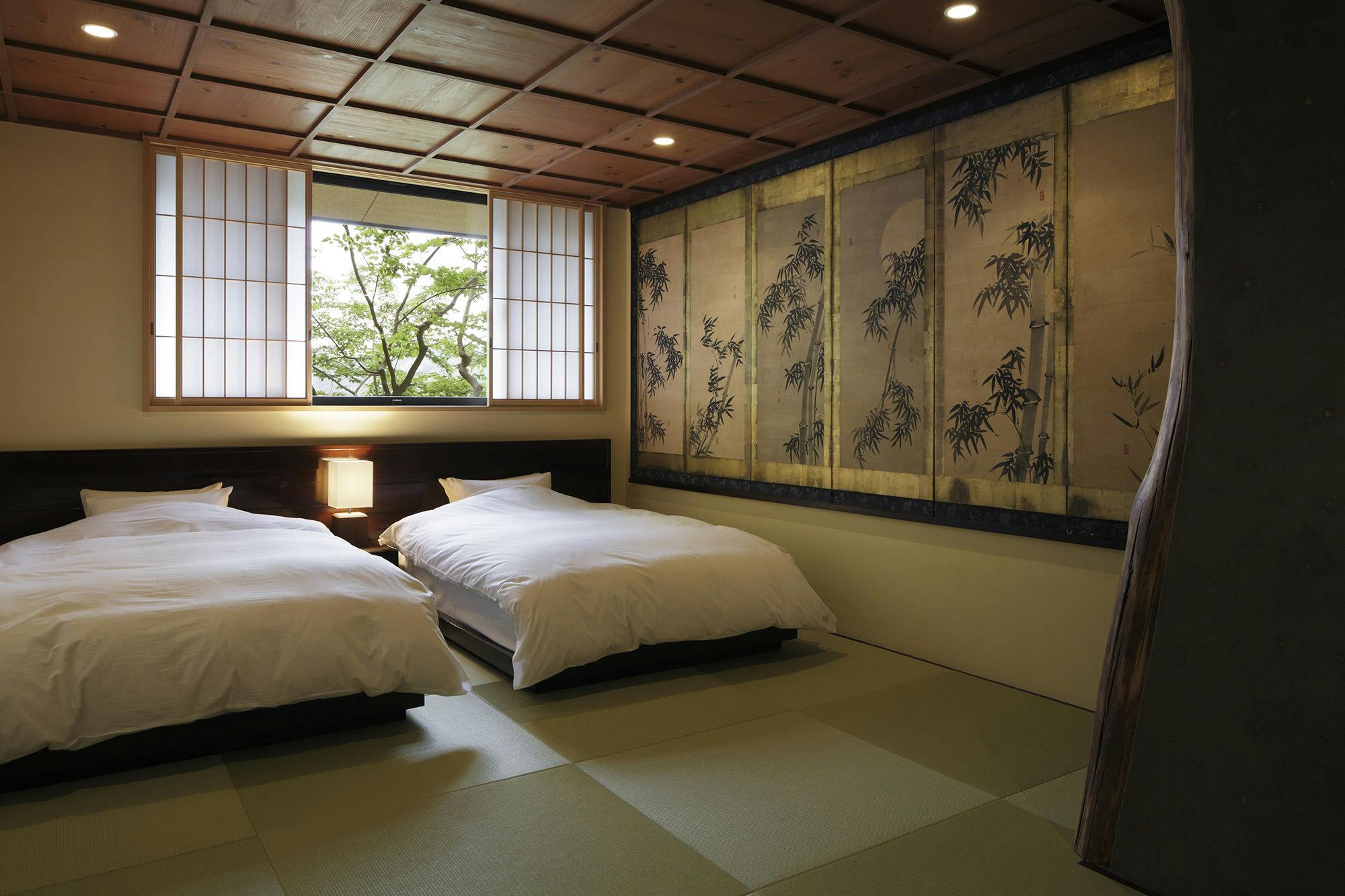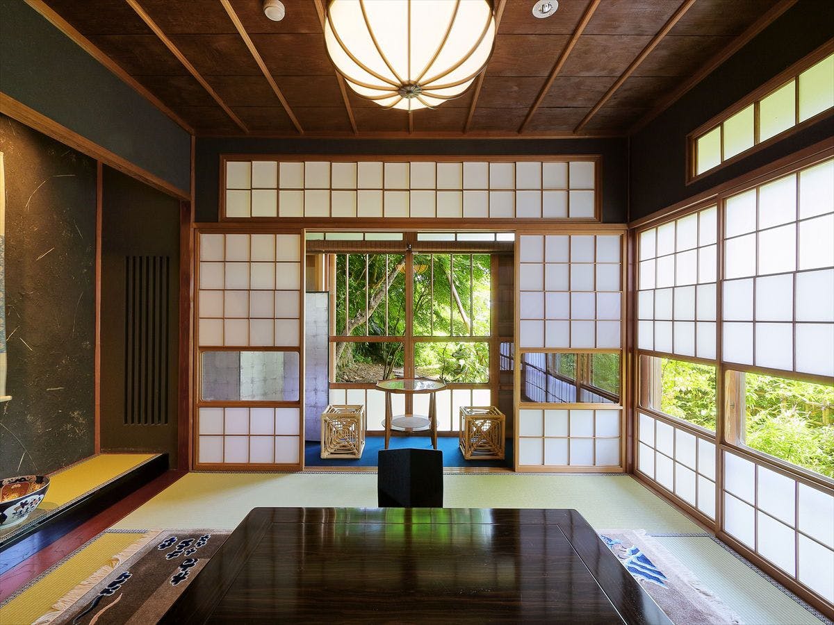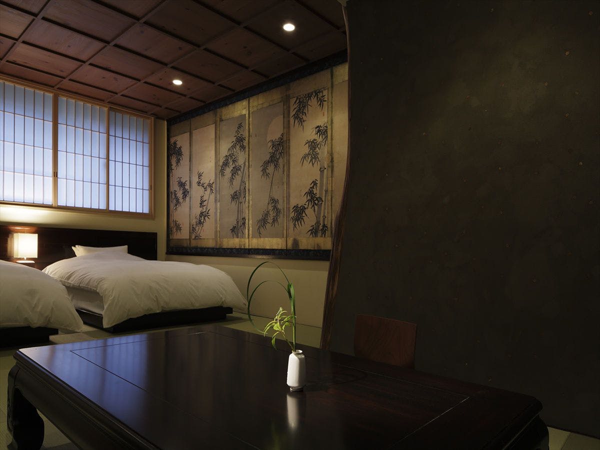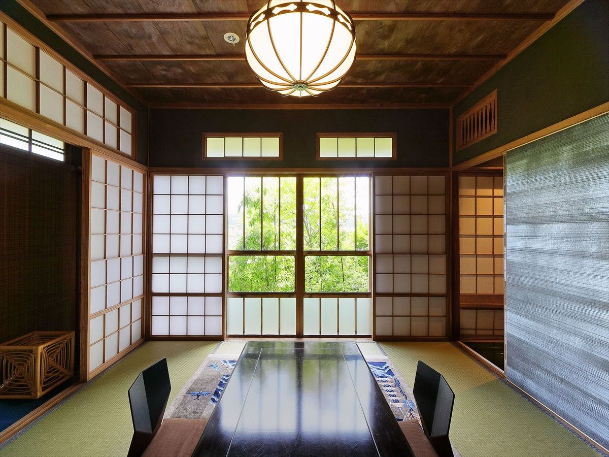 緑草音では七つある客室全て趣を異にし、設えもそれぞれに表情を変えております。