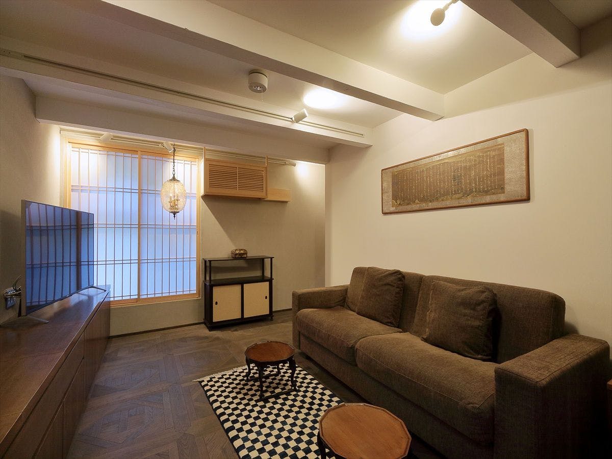 洗い場付バス、洗浄機能付トイレ(バストイレ別)、無料Wi-Fi、TV、ミニバー付き冷蔵庫、リビングセット