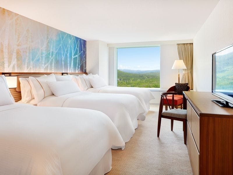 ウェスティンオリジナルの「ヘブンリーベッド」「ホワイトティーアロエ アメニティ」をお楽しみ頂くとともに、支笏洞爺国立公園に囲まれた美しい風景をお部屋からご覧頂けます。