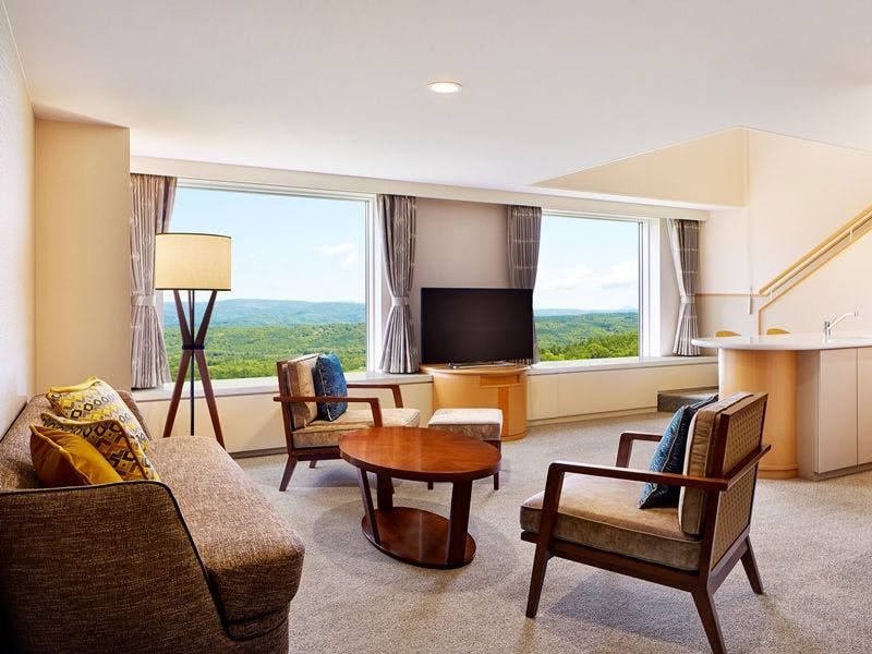 本物志向のナチュラルスパブランド「Panpuri(パンピューリ)」アメニティや、iPhone接続でゆっくり音楽が楽しめるBluetoothサウンドシステムをご用意するとともに、支笏洞爺国立公園に囲まれた美しい風景をウェスティンルスツリゾートの高層階のお部屋からより高くより広くご覧頂けます。
