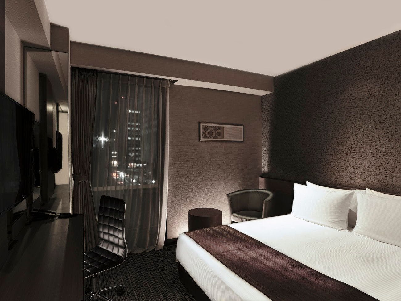ONスタイル(ビジネス)として、ワークスペースを確保したデスク。ベッド近くのコンセントは、通常のコンセントとUSBコンセントで2ポートタイプとなっております。
