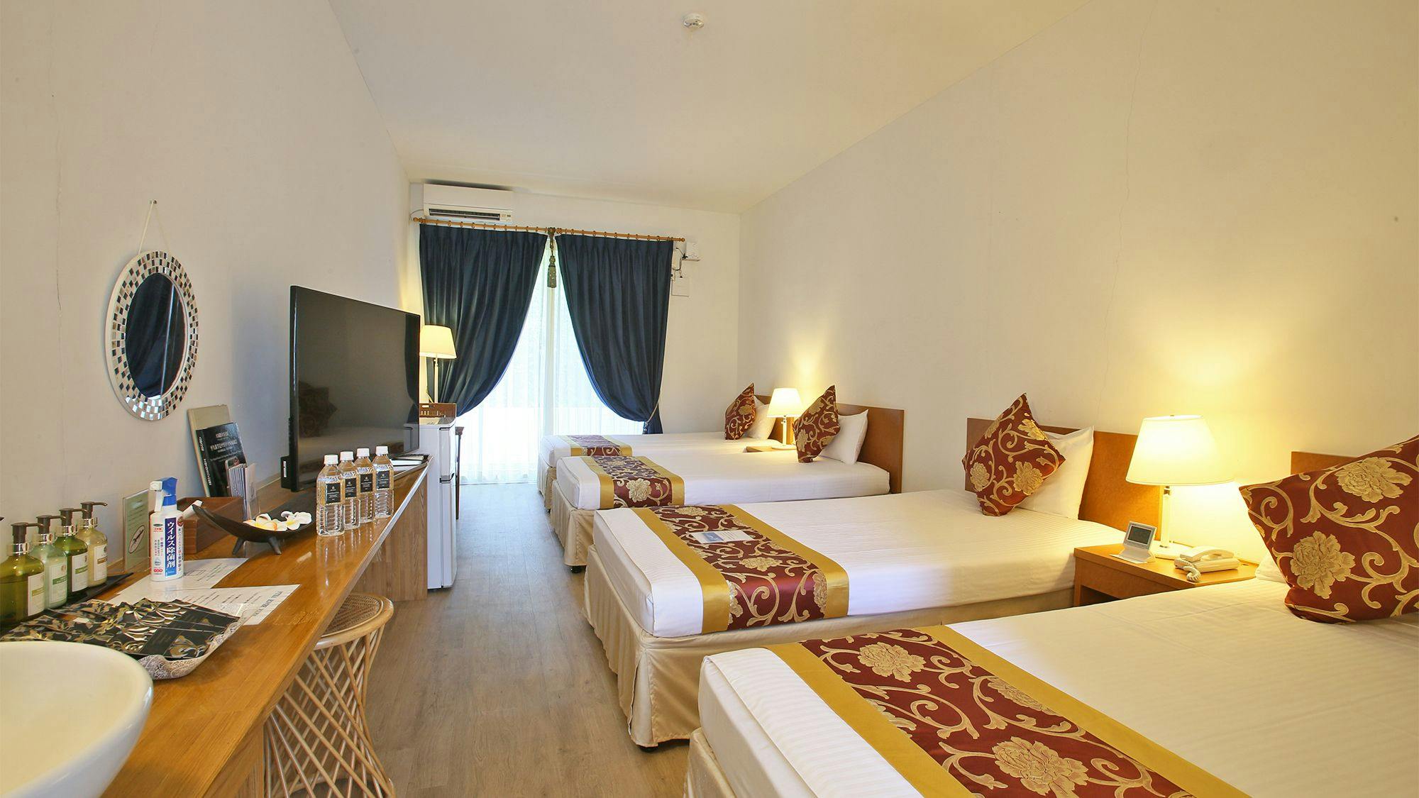 29平米 ベランダ付き ベッド幅110cm×4台小学生未満添い寝無料/朝食別料金海まで徒歩3分※バスタブはございません。シャーワーブースのみとなります。