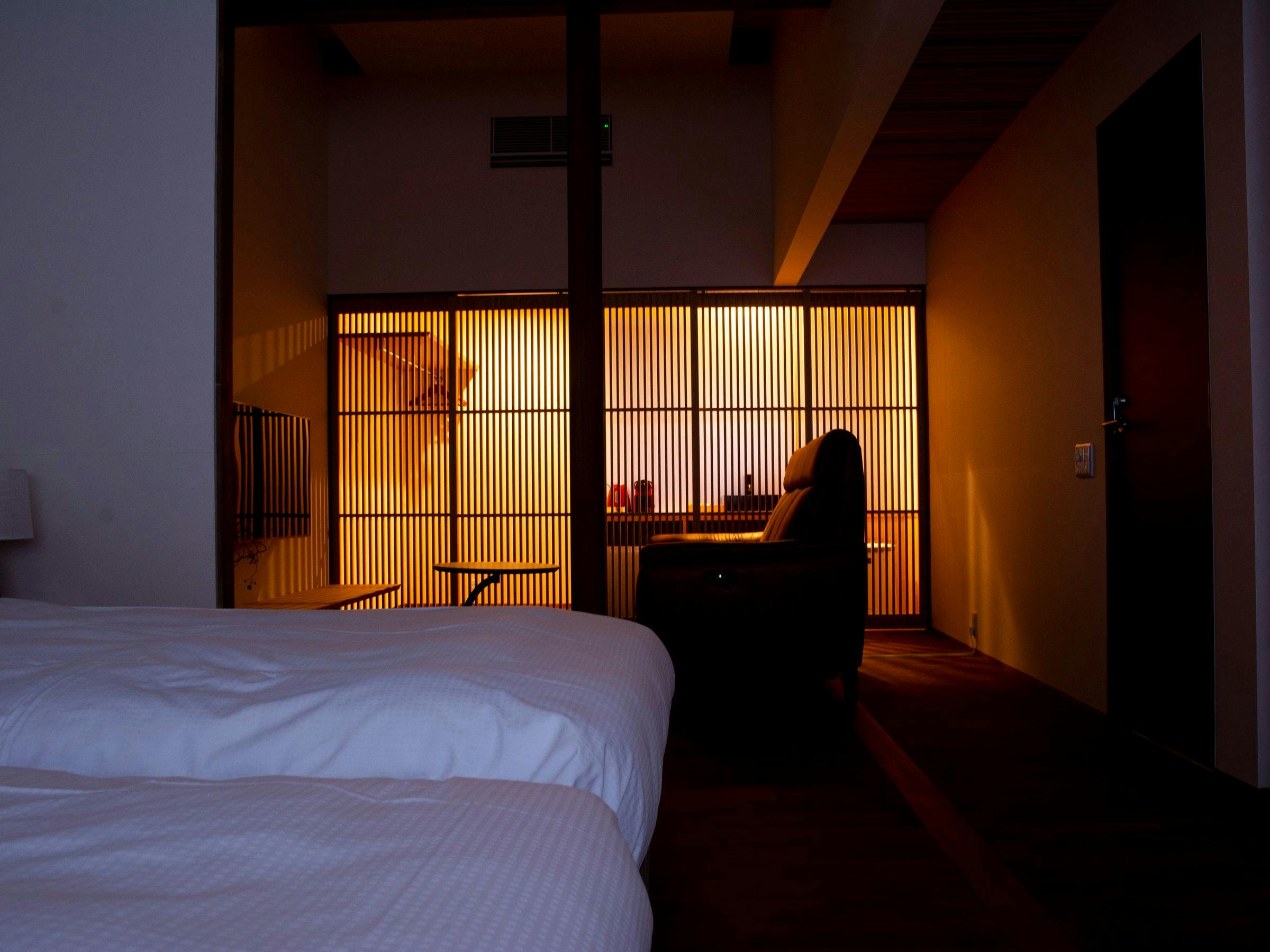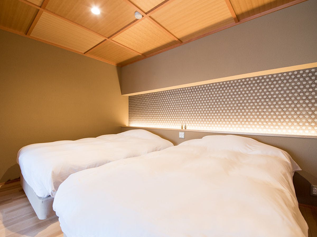 ベッドはツインとなっており、ベッドルームは障子を閉めることで部屋を区切ることができます。