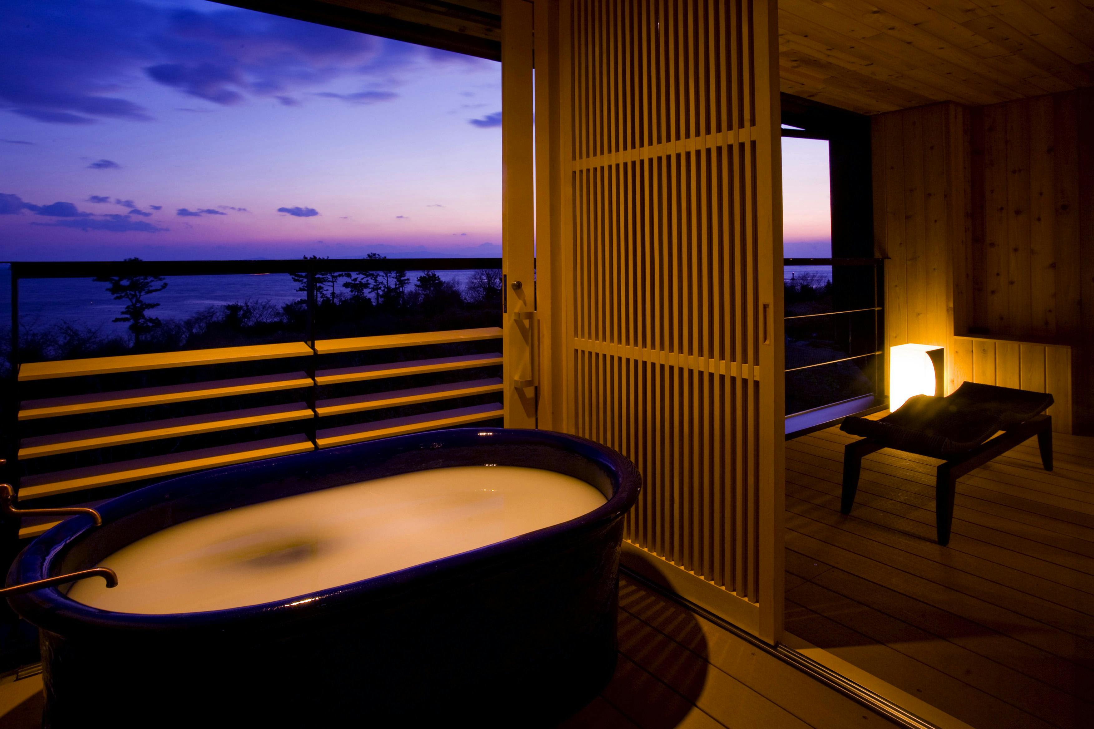 知多半島 日間賀島の高台に建つ全5室の隠れ家。全室シルキーバスの露天風呂付きオーシャンフロントの絶景。ミシュランガイド愛知岐阜三重2019掲載旅館!
