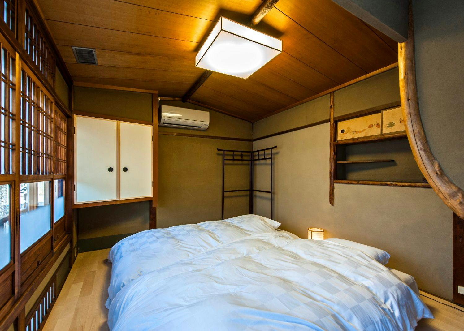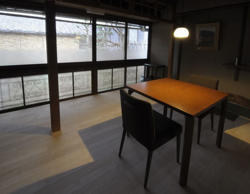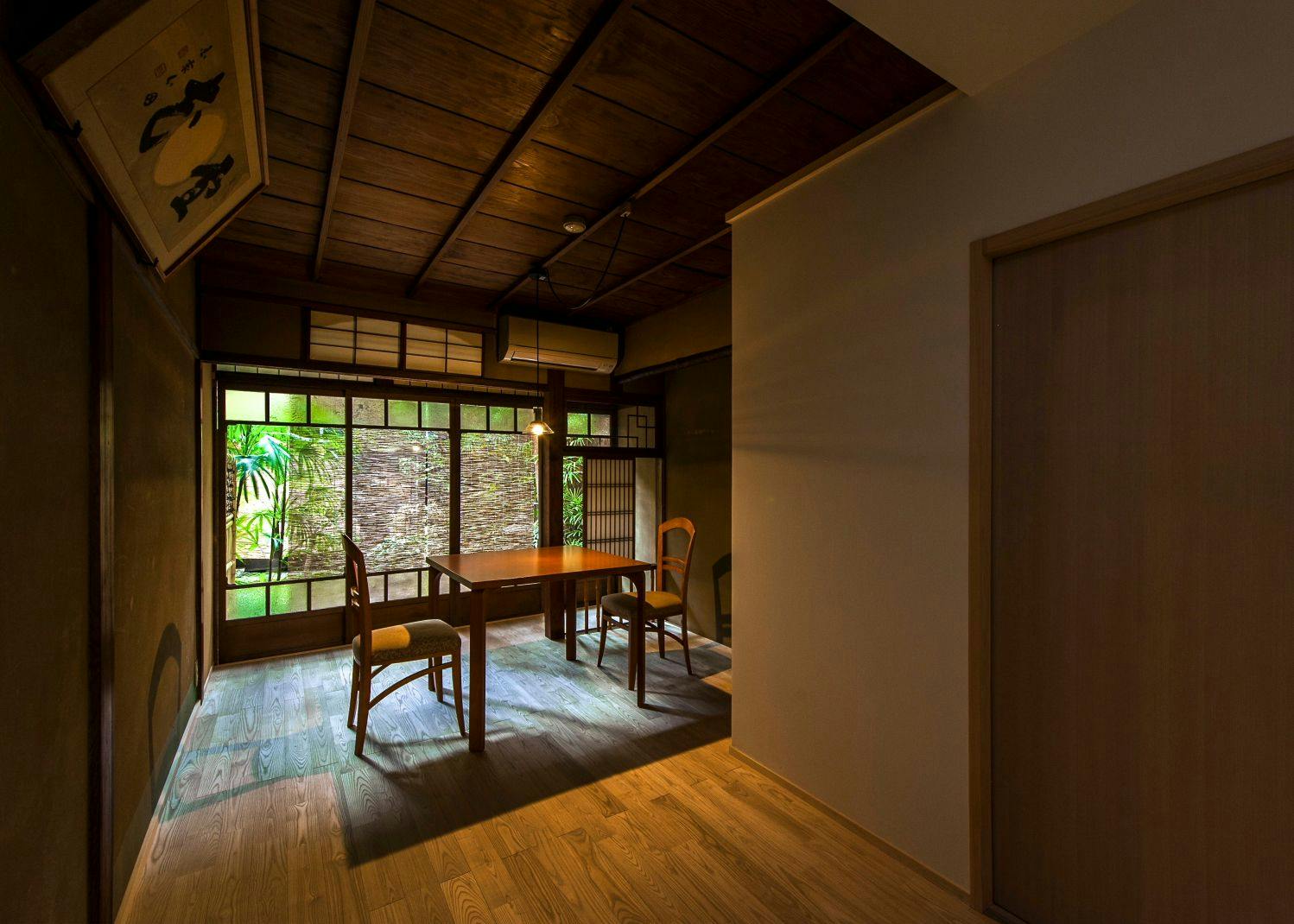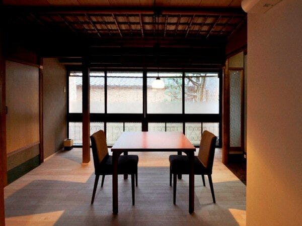 1階、寝室とダイニングスペースの二間あるお部屋。縁側からもダイニングからもお庭を眺め、季節の風を感じることができます。こちらのお部屋は部屋食も可能ですので、カップルやご夫婦でゆったりとお過ごしください。