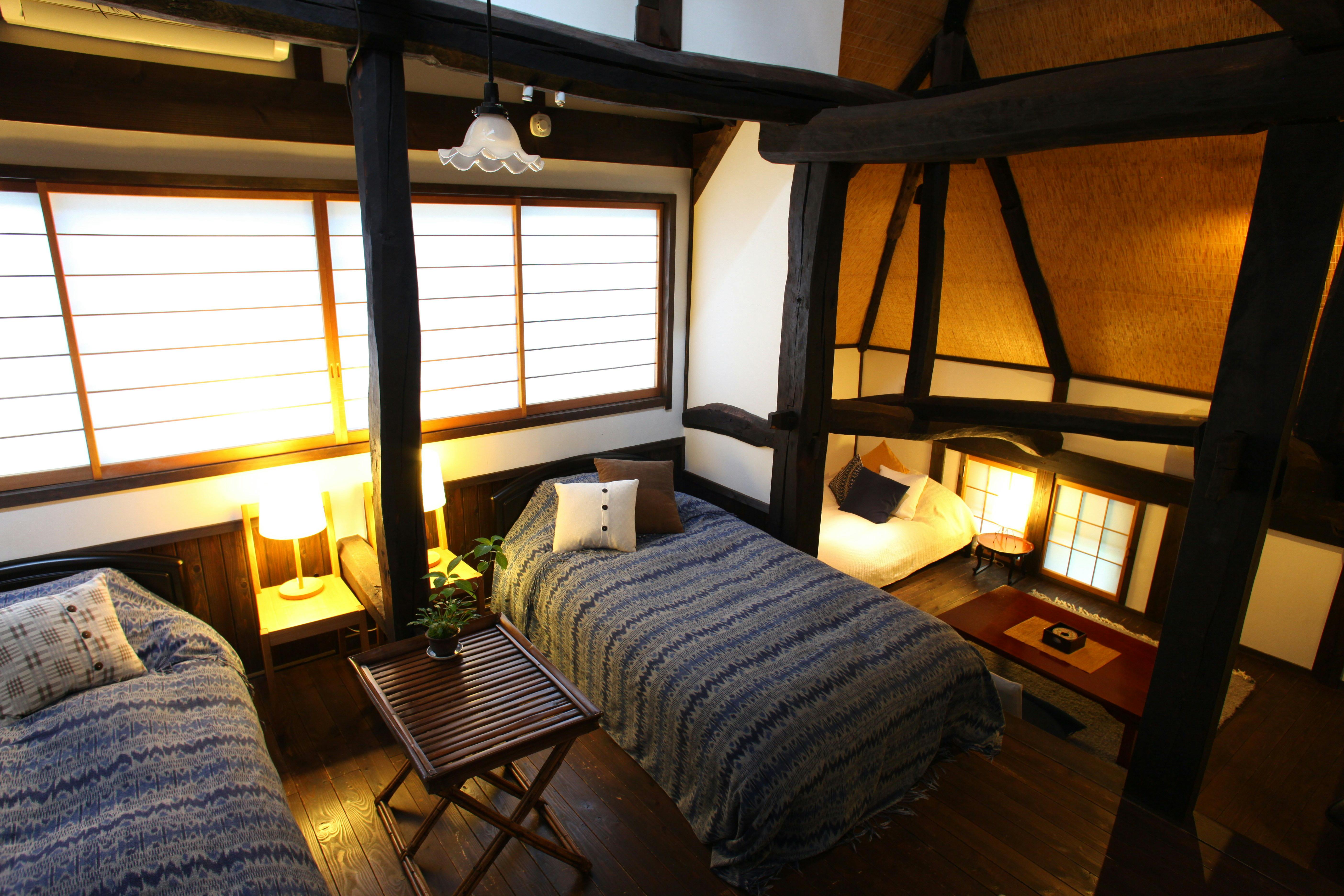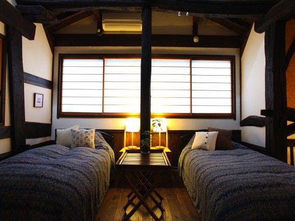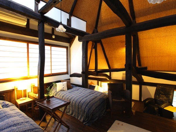【益子】大人の隠れ家風の部屋。段差のある、二間続きの洋間。ロフトタイプの「益子」にお泊りいただくプラン。