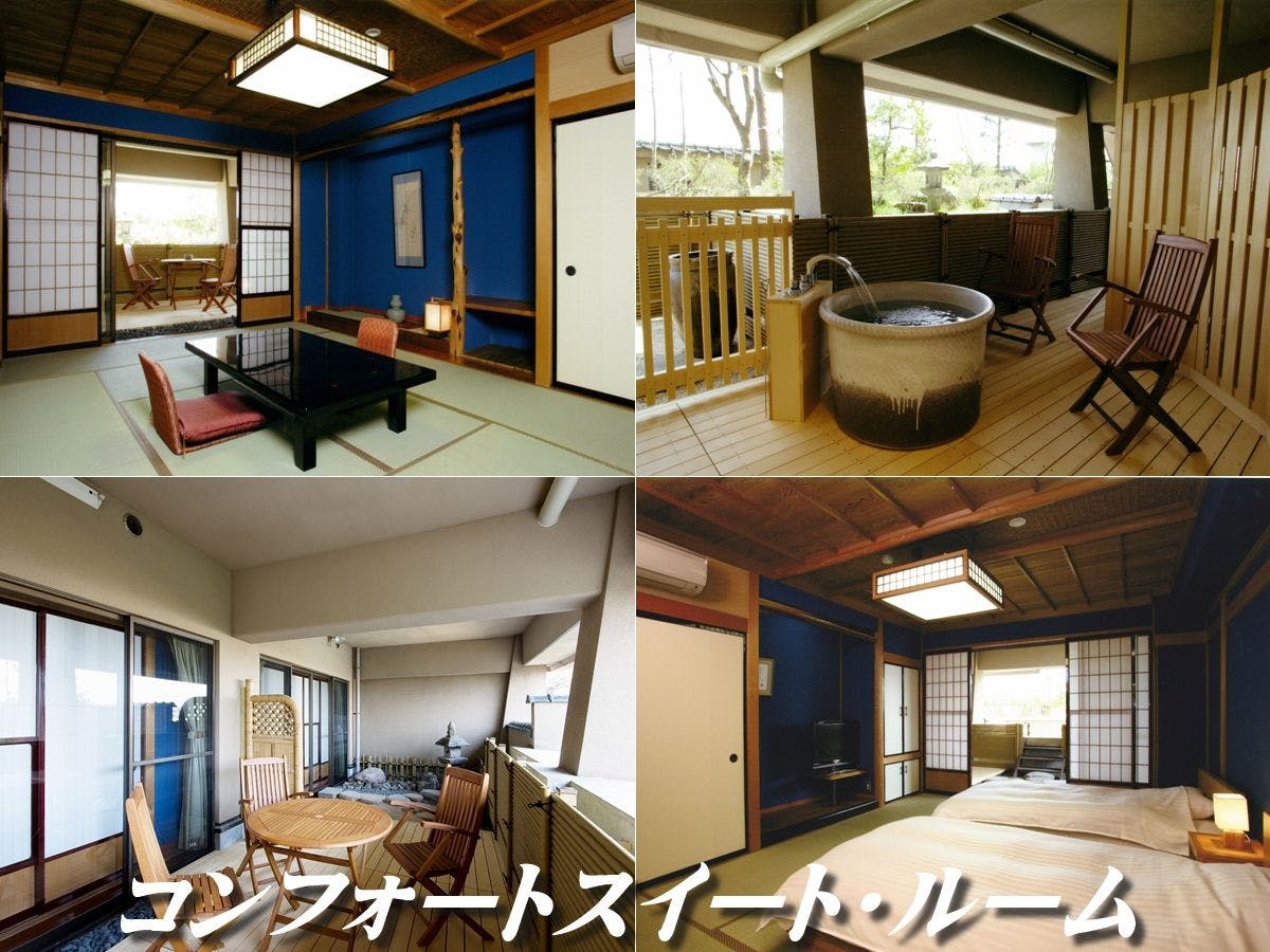 居間12畳+洋間の広々とした展望ウッドテラス付き和洋室のお部屋です。