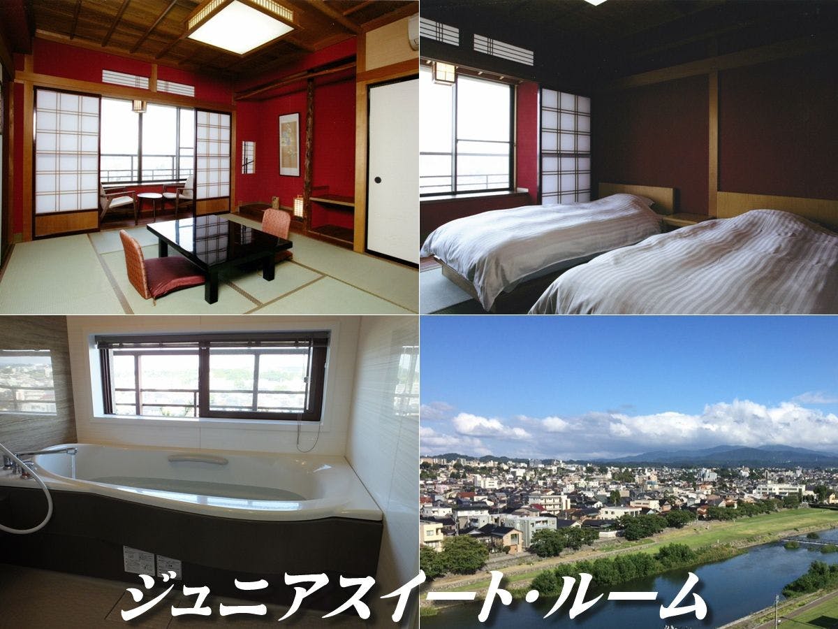四季の彩り豊かな“犀川”が目の前を流れ、市内でありながら自然情緒を感じる好立地宿。全室【加賀五彩】の土壁。「金沢風情」と「現代モダン」が調和したお部屋で、ごゆるりと贅沢な時間をお過ごしください