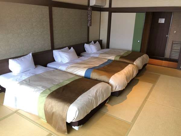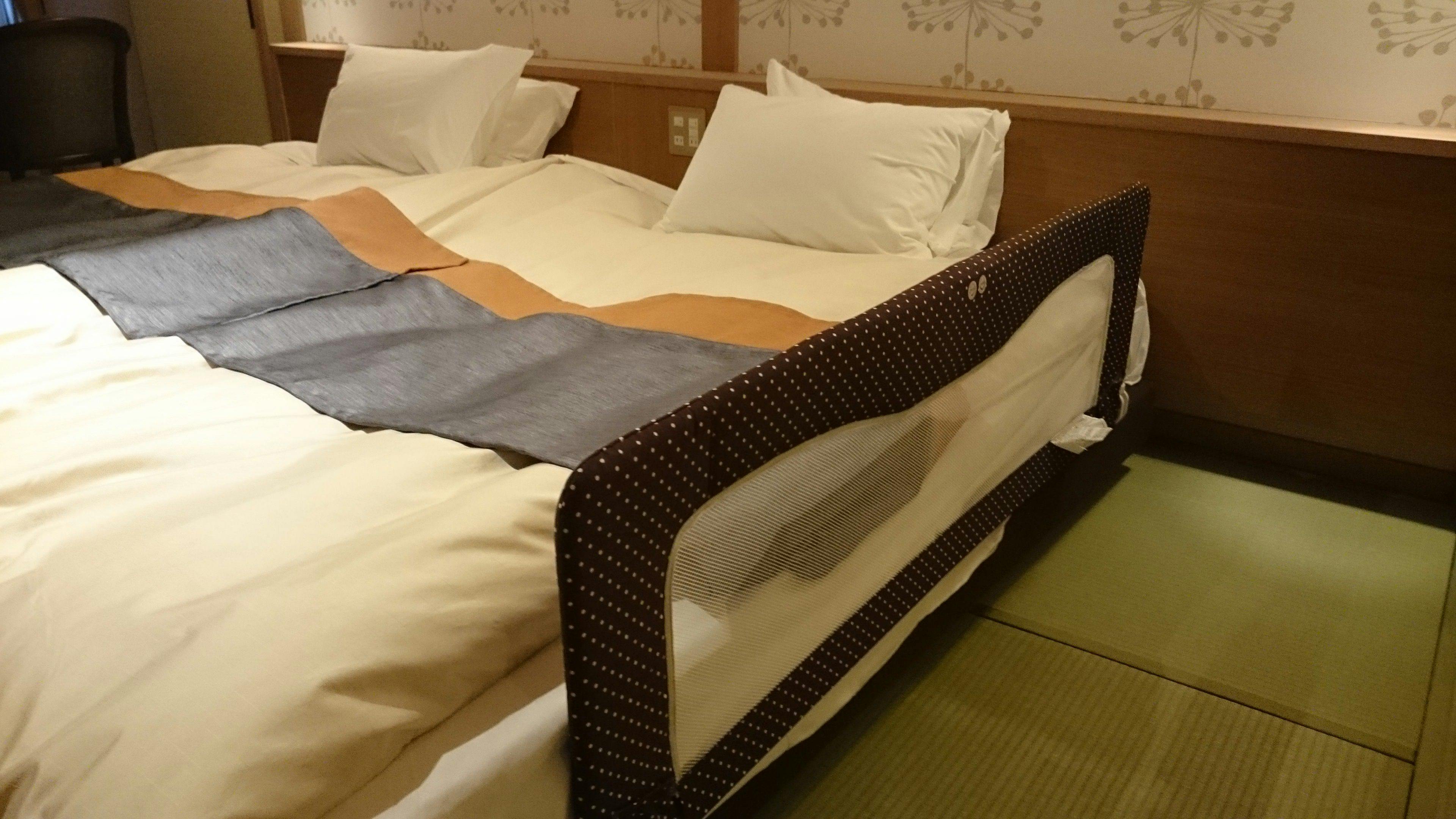 小さなお子さんをお連れの方に嬉しい、セミダブルサイズのベッドを2台つなげた